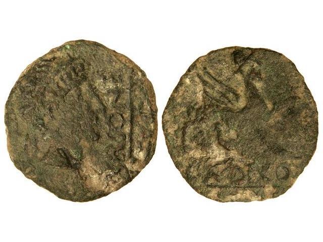As. URSONE. Anv.: Cabeza masculina a derecha, delante VRSONE subrayado. Rev.: Esfinge a derecha. 11,90 grs. Pátina verde. AB-2499. BC+.