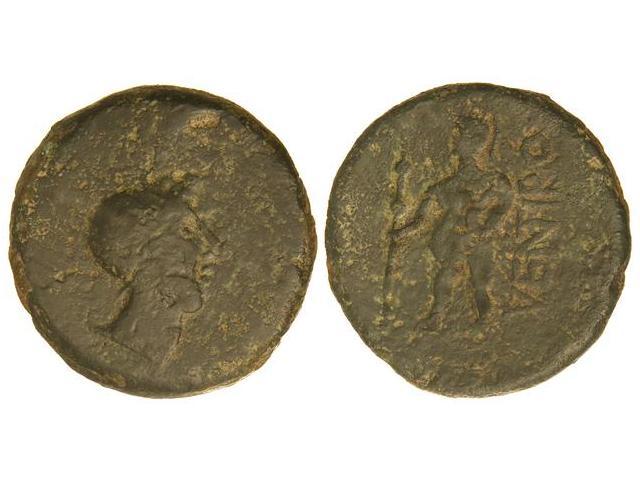 As. VENTIPO. Anv.: Cabeza masculina a derecha con casco. Rev.: Soldado con escudo y tridente, a la derecha VENTIPO. 27,70 grs. Pátina verde oscura. AB-2517. MBC.