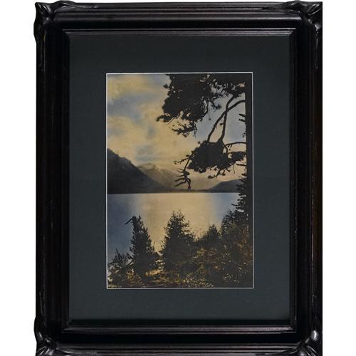 <B>Asahel Curtis Original Hand Tinted Photo of Mount Baker</B></I> in the Washington Cascades. The negative number "41902" is visible in the lower left corner. Sight size is 9" x 13", matted in dark green and custom framed to an overall 17" x 22". Asahel Curtis, Edward's younger brother, is known for his landscape scenes throughout the Pacific Northwest. This softly focused mountain and lake tableau features subtle but effective tinting. Mount Baker was named for Lt. Joseph Baker III of the HMS <I>Discovery</B></I> who sighted it in 1792. For the ski fans out there, it is one of the snowiest places in the world! Excellent condition.<BR><BR><b>Shipping:</b> Framed - with Glass, Medium (<a target="_blank" href="http://www.heritageauctions.com/common/shipping.php">view shipping information</a>)
