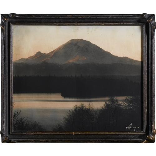 <B>Asahel Curtis Original Hand Tinted Photo "Dawn"</B></I> in original "pie crust" frame, signed "© 1911 ASAHEL CURTIS" in the lower right. Sight size is 16.5" x 13.5", framed to 20" x 17" overall. A subtle scene beautifully capturing the earliest hints of the early morning sun rising on the still lake in the foreground and the mountain in the background. Excellent condition save for some wear to the frame and a very tiny area of lifted emulsion in the lower right corner.<BR><BR><b>Shipping:</b> Framed - with Glass, Medium (<a target="_blank" href="http://www.heritageauctions.com/common/shipping.php">view shipping information</a>)