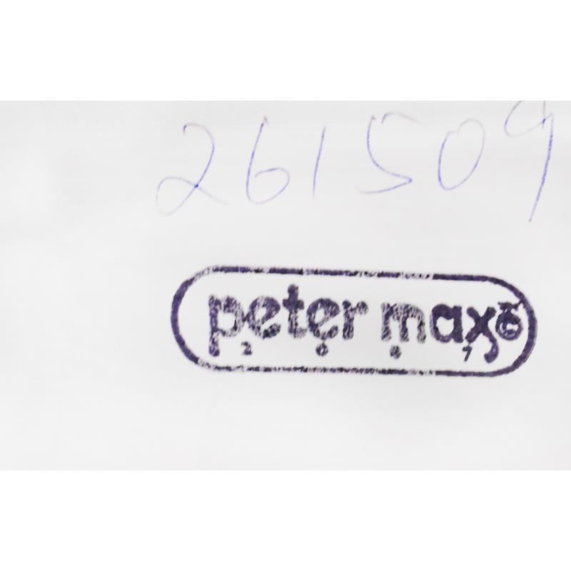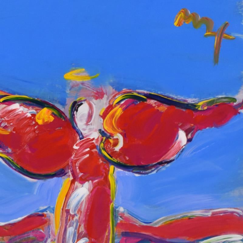 "Ascending Angel" is a one-of-a-kind acrylic mixed media on paper, hand signed by Peter Max. This piece comes custom framed. On the reverse side of this piece there is a registration number (261509) from Peter Max Studios certifying authenticity. Measures approx. 35" x 47" (with frame), 23" x 35" (image).