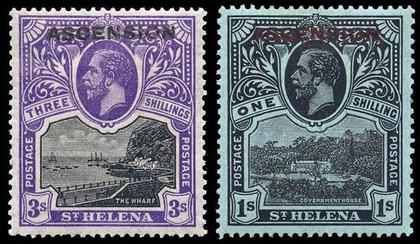 Ascension, 1922, "ASCENSION" on St. Helena, ½d to 1s complete. Scott 1-9. SG 1/9 £325 ($420), VF