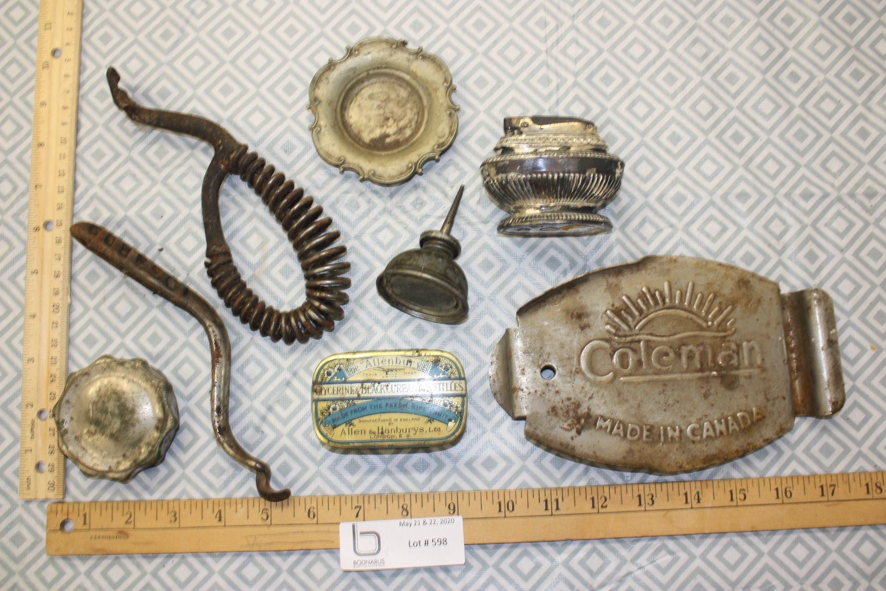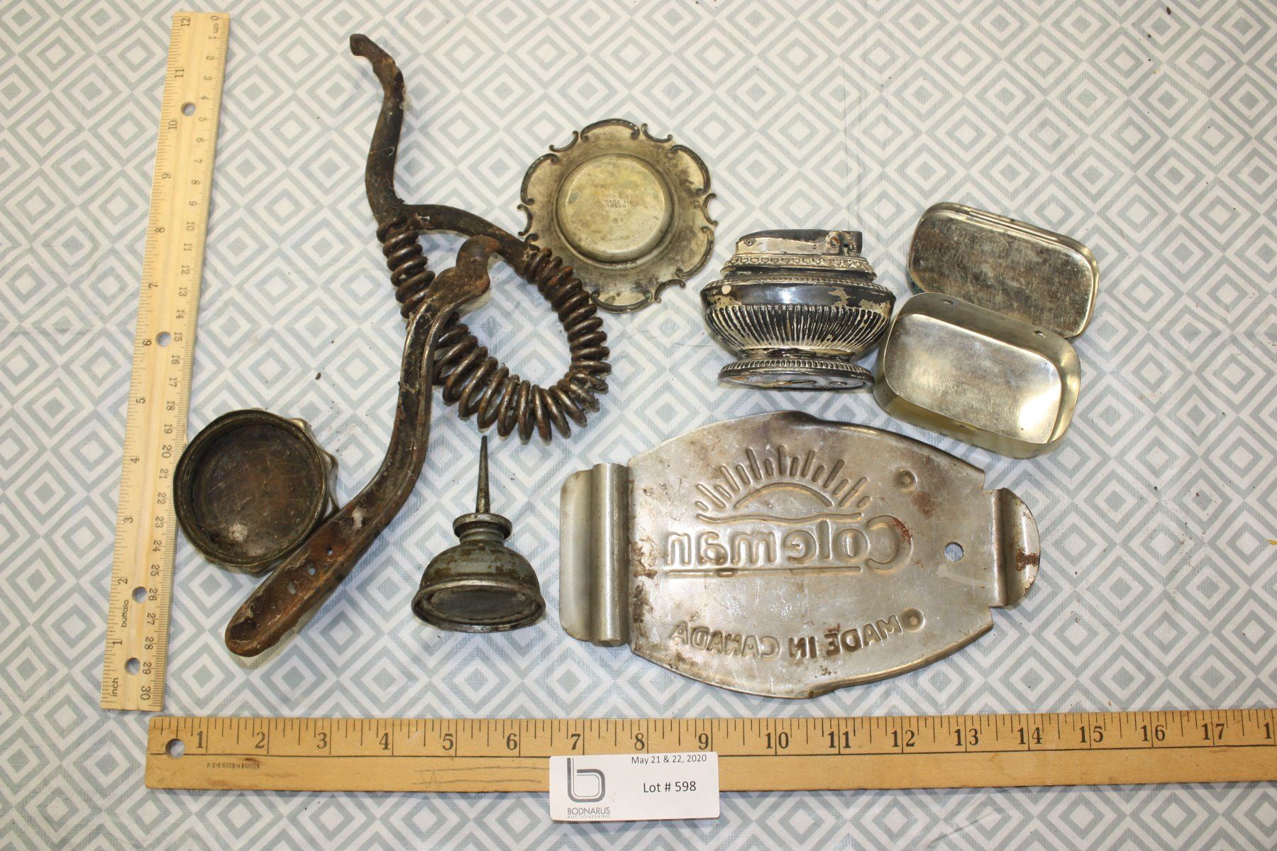 Ash Tray, Coleman Trivet, Oiler and Misc