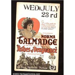 Ashes of Vengeance (First National, 1923). Window Card (14"X22") Norma Talmadge starred with Wallace Beery in this film about 16th-century French royalty. Pretty card with the tagline "If a million people saw Ashes of Vengeance a million hearts would cry out to the world ' There is no greater picture!' ". Very Fine Important notice: We expect to be auctioning lots at the rate of 200-250 per hour. Sometimes eBay Premier live bid software cannot keep up with that pace, so we strongly recommend that you place a realistic proxy bid now as insurance to avoid disappointment. Also please note that all Heritage/CAA lots purchased through eBay Premier carry a 20% Buyer's Premium.