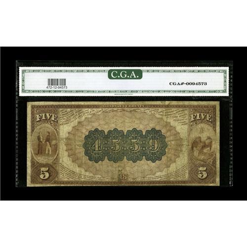 <B>Ashland, KY</B></I> - $5 1882 Brown Back Fr. 472 <B>The Merchants NB</B></I> Ch. # 4559<BR>From our sale of the Bill Gale collection where the description read, "A truly rare note from the Gale holdings from a bank which issued Brown Backs only until its demise in 1906. Just two examples are known, with this considerably the finer of the pair. Bill obtained this at the Glenn Martin collection sale where he paid just over $3000. Nearly four years later, that appears to have been an awfully astute purchase." <B> CGA Fine 12.</B></I><BR><BR><b>Shipping:</b> Coin/Currency (<a target="_blank" href="http://www.heritageauctions.com/common/shipping.php">view shipping information</a>)