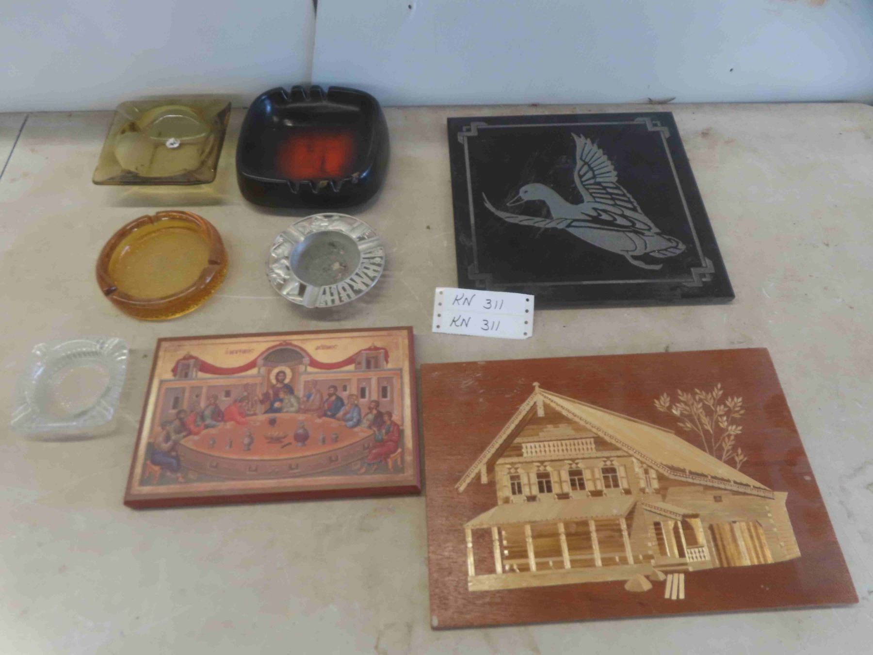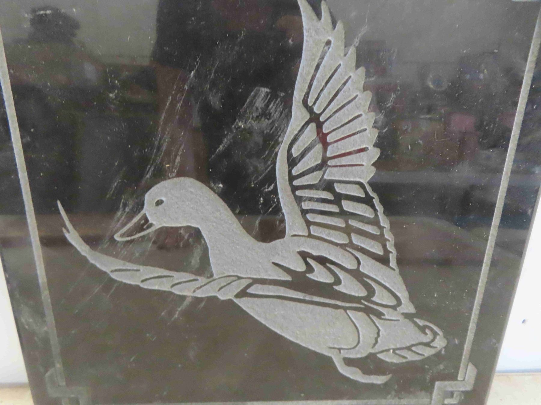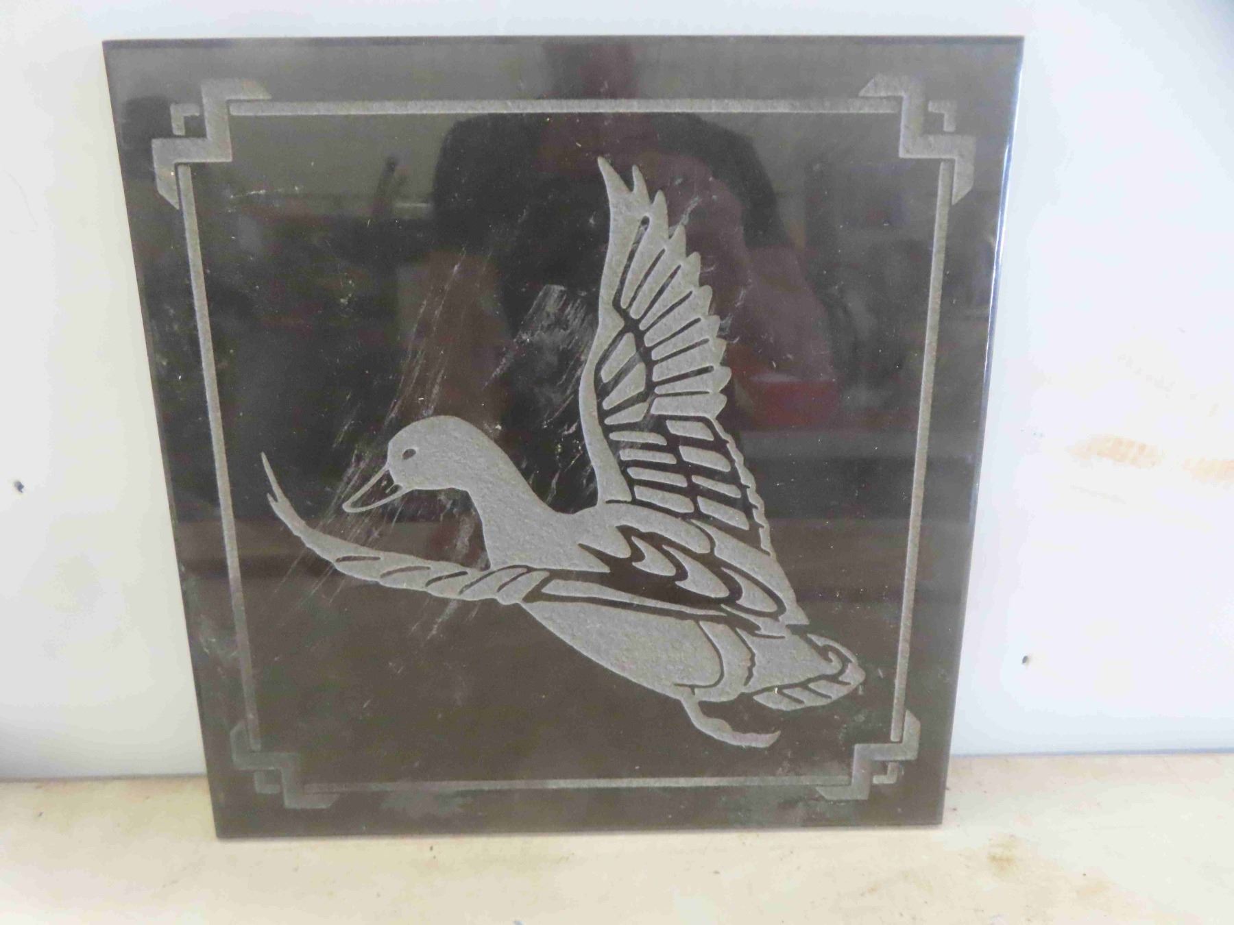 Ashtrays, Wood Inlay Picture 14 1/2'' x 10'' , Flying Duck on Granite 12'' x 12''