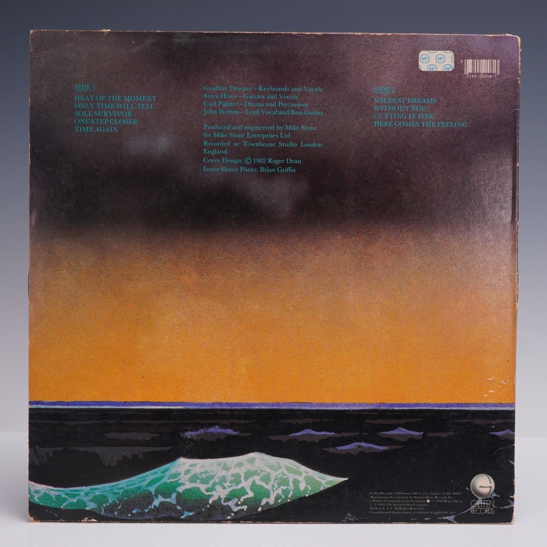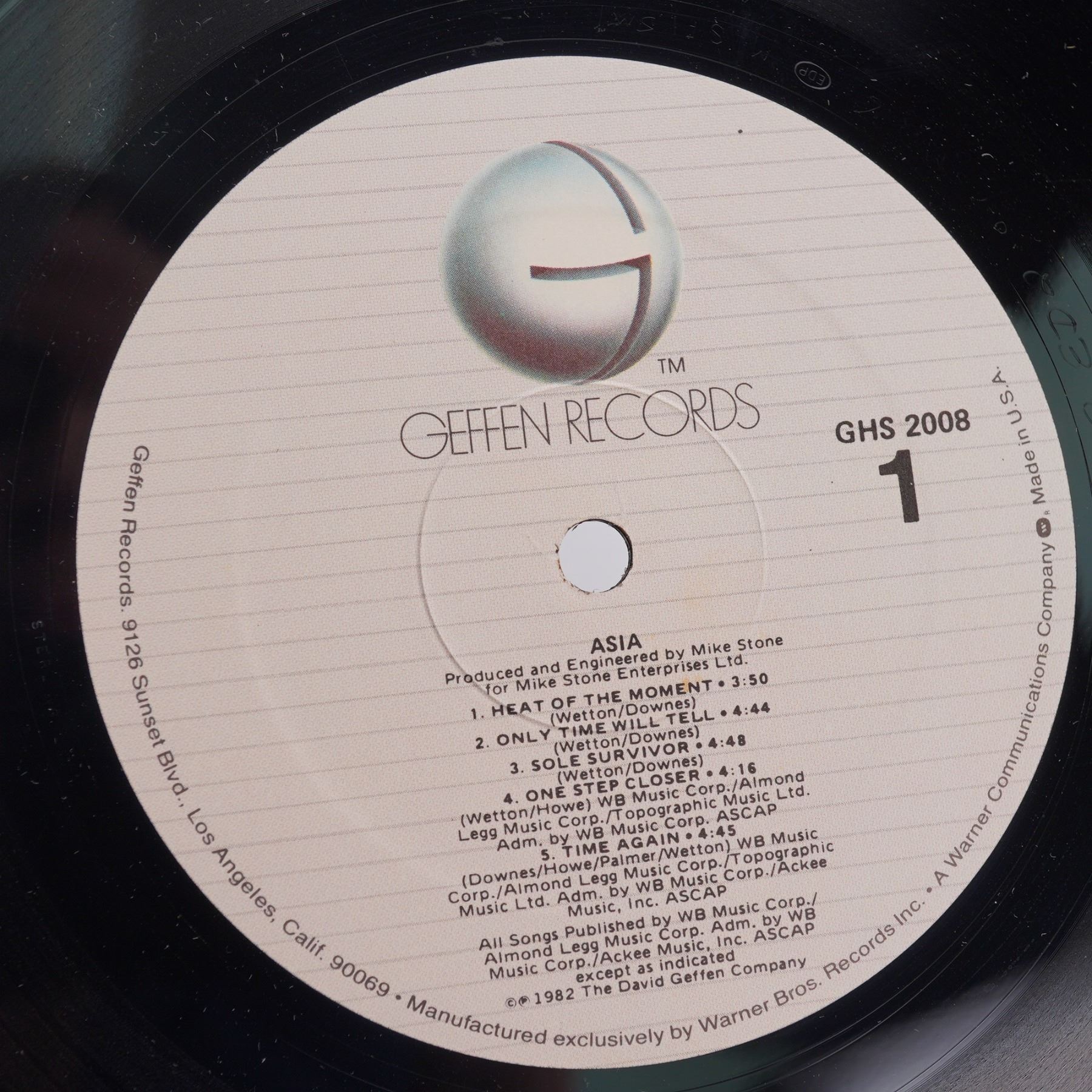 Asia - Asia vinyl LP album, the debut release from the progressive rock supergroup, issued in 1982 on Geffen Records (GHS 2008). Featuring members of Yes, King Crimson, and Emerson Lake & Palmer, the band made an immediate impact with this polished, radio-friendly album that includes the massive hit Heat of the Moment, along with Only Time Will Tell, Sole Survivor, and Time Again. Produced by Mike Stone, the album blends progressive rock instrumentation with strong pop hooks. The cover art, created by Roger Dean, depicts a fantastical sea serpent leaping through ocean waves toward a glowing orb, a visual hallmark of 80s prog-rock design. Original Geffen label on the vinyl, with sleeve showing moderate edge wear and surface scuffing, typical for early 80s pressings.