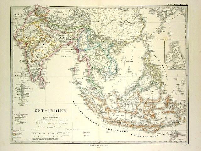Rare detailed map produced by Adolf Stieler, creator of some of the most detailed maps of the 19th century. This beautiful map with excellent detail and original hand-coloring is engraved on thick paper with a nice strong impression from the engraving plate. Stieler maps are regarded as some of the most precise maps of the 19th century, having numerous re-issues spanning over 100 years. Sheet size of map is 18'' x 14.5''. Very good condition.