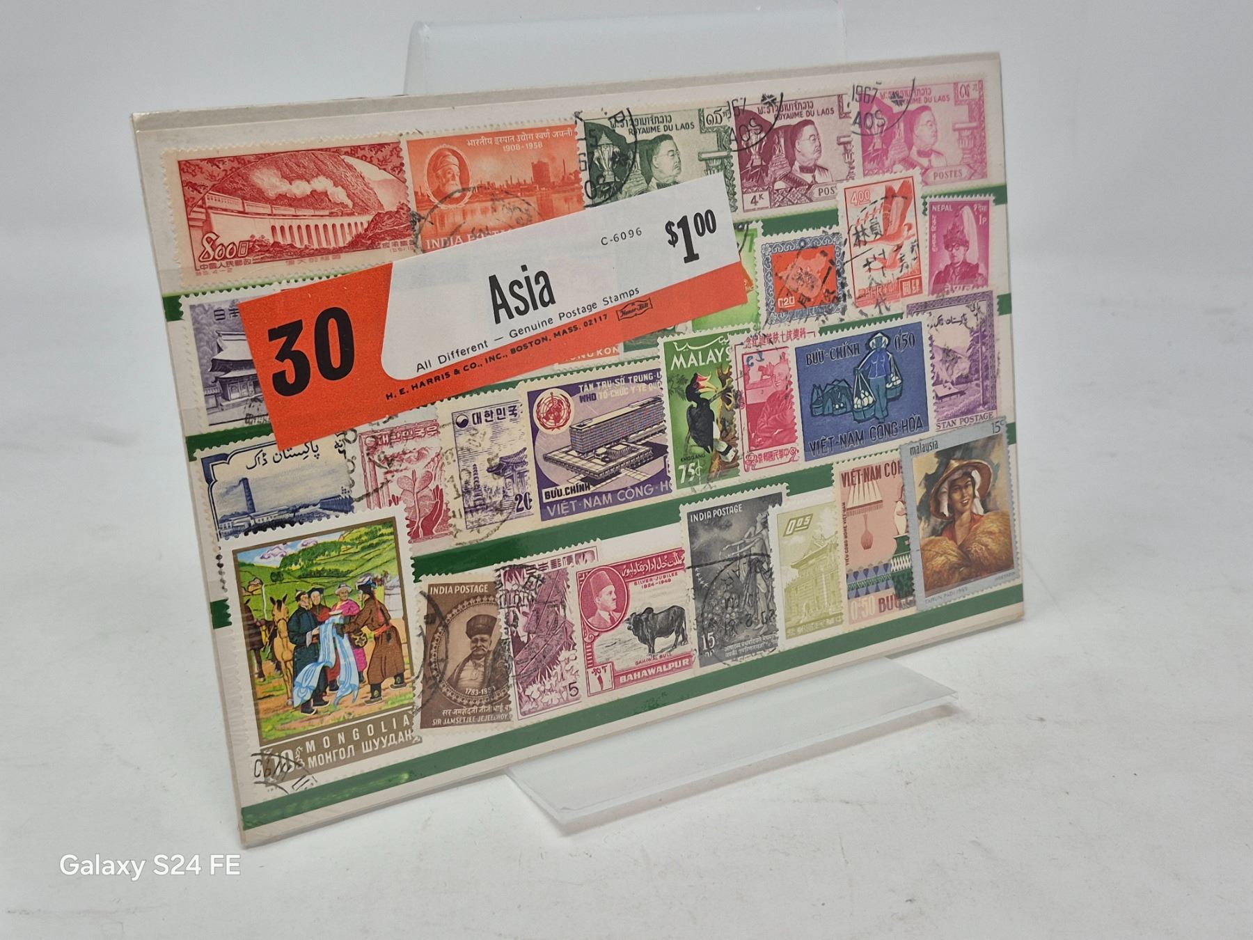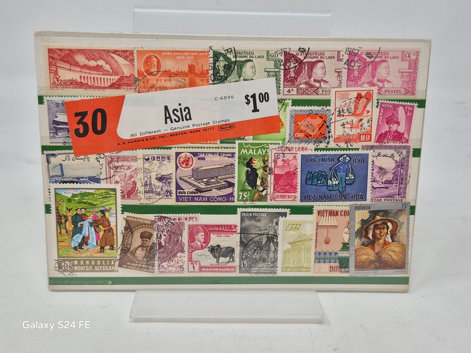 Collection of 30 genuine postage stamps from various Asian countries including India, Vietnam, Laos, Nepal, and more. Great starter set or addition for collectors.