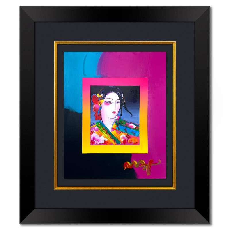 "Asia on Blends" is a one-of-a-kind mixed media on paper, hand signed by Peter Max. The piece comes custom framed with a backside cutout to display Peter Max Studio registration number 203126 certifying authenticity. Measures approximately 28" x 24" (frame), 19" x 15" (image). This item requires special handling and may have a longer than usual turnaround.