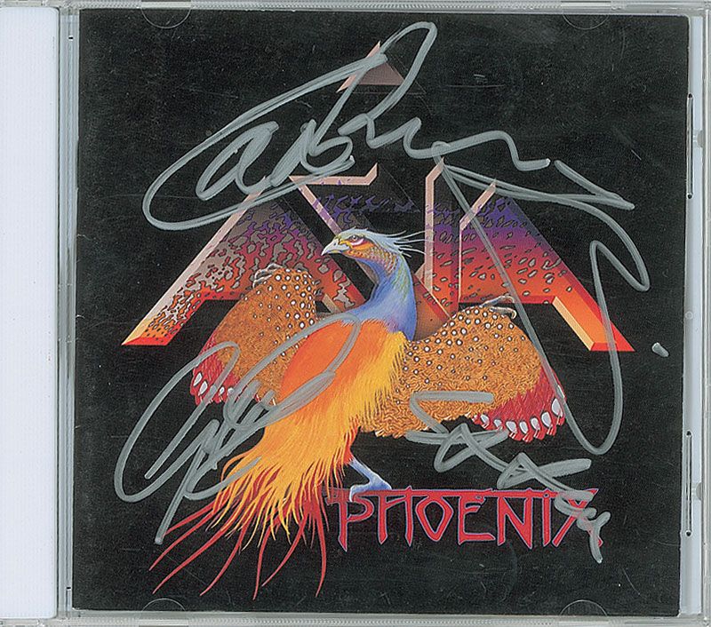 Phoenix CD booklet signed on the front cover in silver ink by John Wetton, Geoff Downes, Steve Howe, and Carl Palmer. In fine condition.