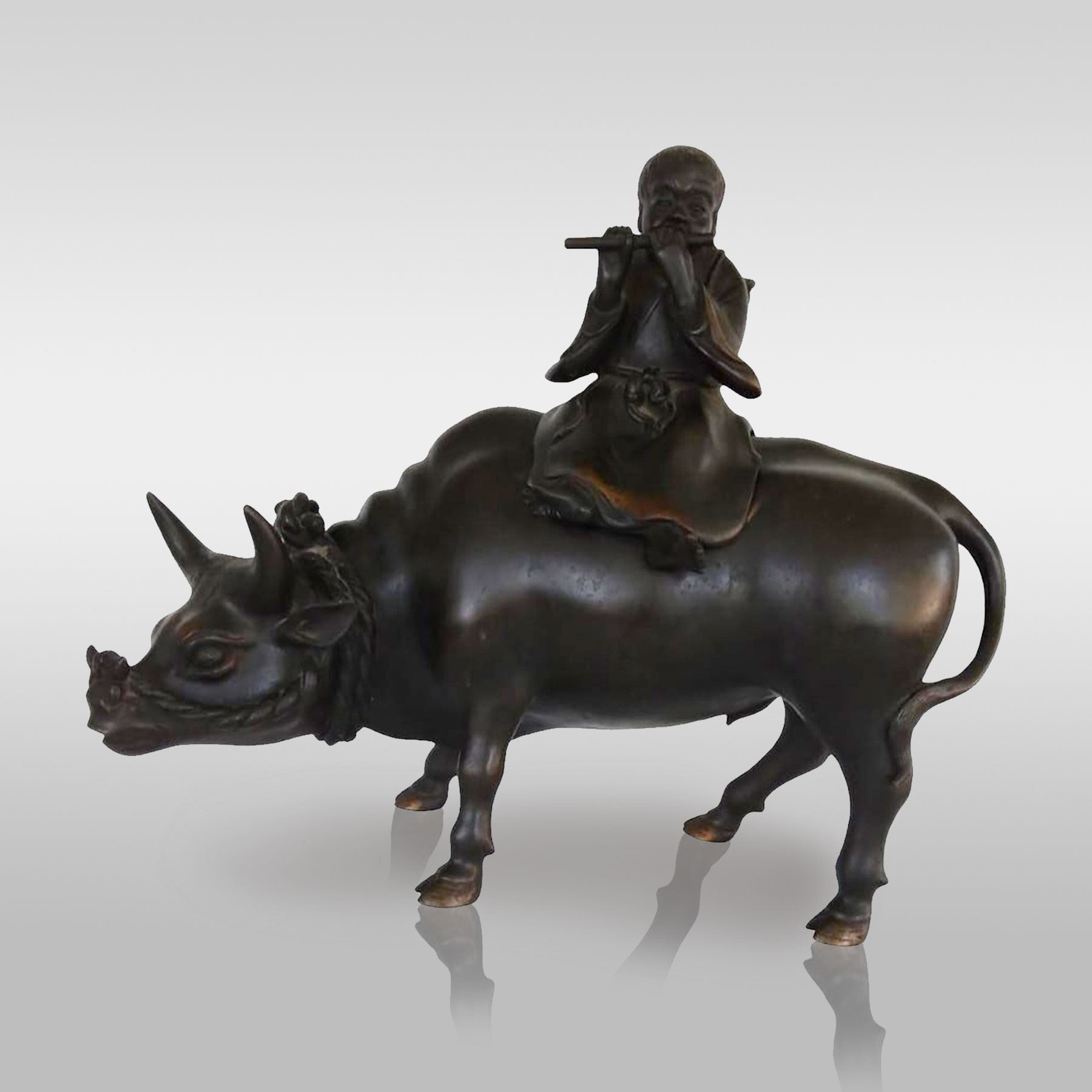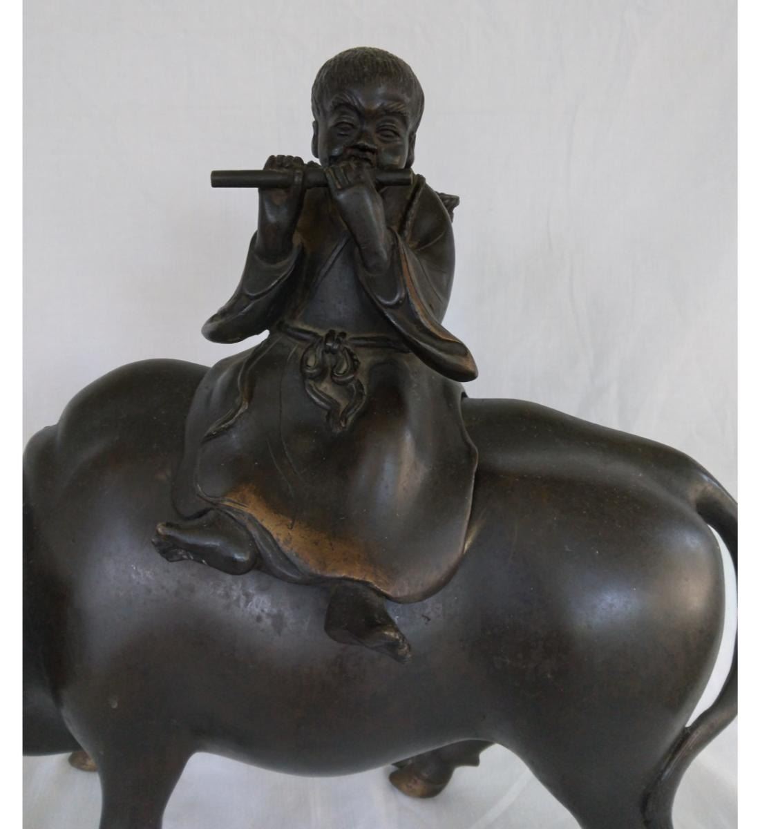 A Bronze Cow Censer With A Boy 19th Century. Measure 40 Cm X 34 CM. Provenance: One Person Private Estate Central Florida.