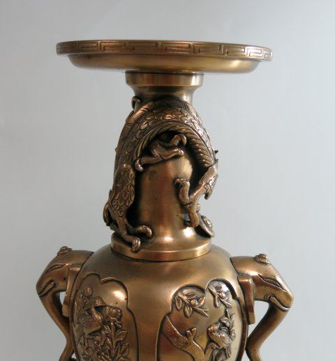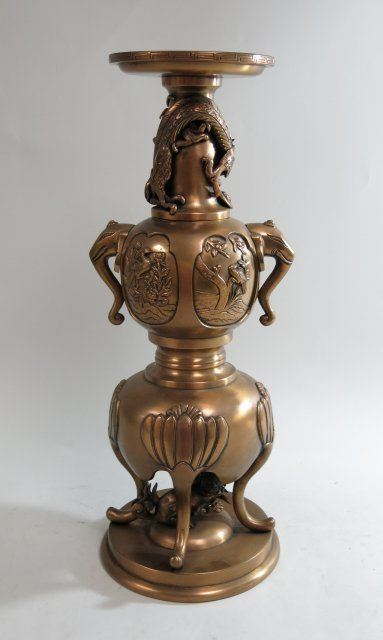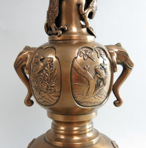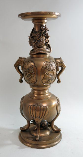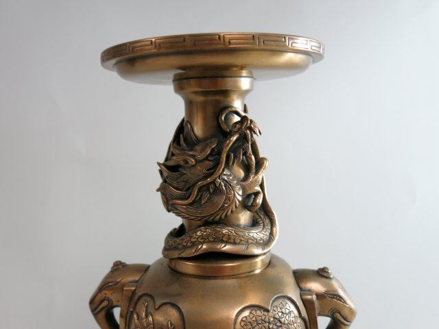 With dragon, foo dog, trees, birds & elephant handles. Approx. 19 1/2" H.
