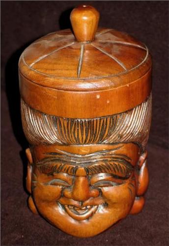 Asian Carved Wood Humidor, 8 x 4.5" dia.