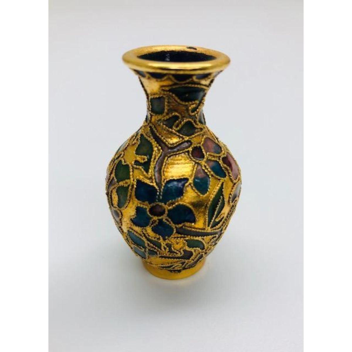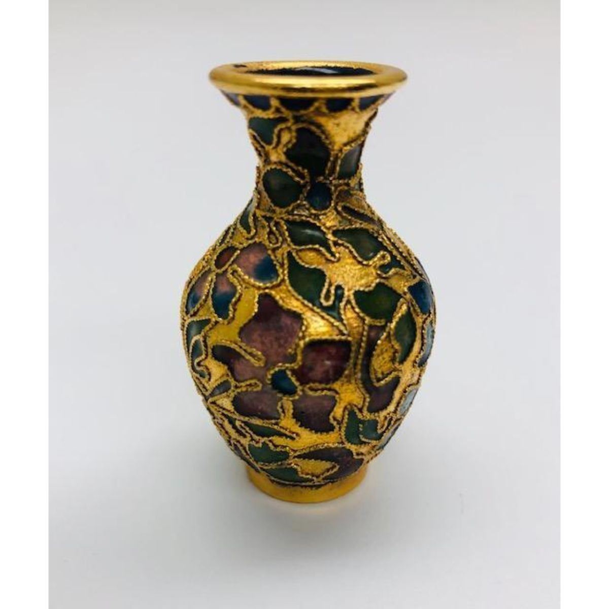 Asian Cloisonne & Enameled Floral Decorated Vase. The Vase Displays Excellent Contrasts In Color Resembling Emperor Quality In The Recessed Craftsmanship. A Stunning Design In Metal & Enamel Work In This Lovely Asian Vase. View Photos For Further Details.