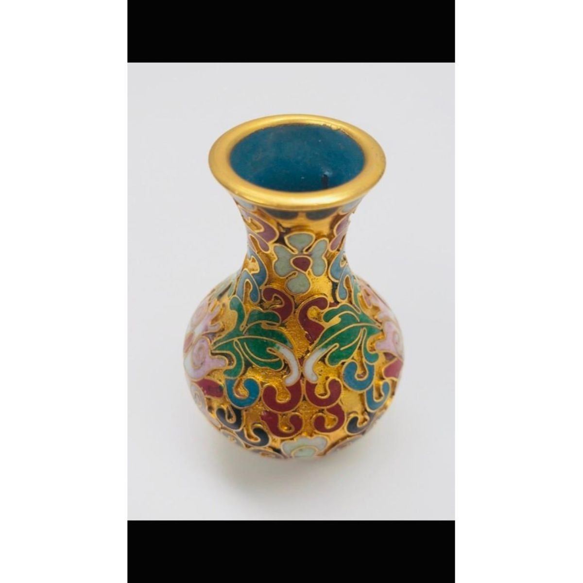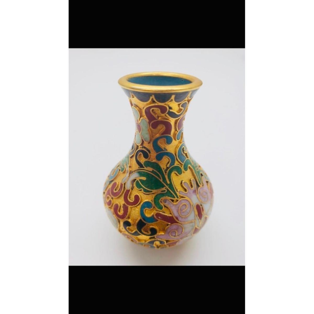 An Asian Cloisonne & Enameled Floral Decorated Vase. Brass & Enameled Craftsmanship Demonstrated Very Well In This Exquisite Vase. View Photos For Further Details.