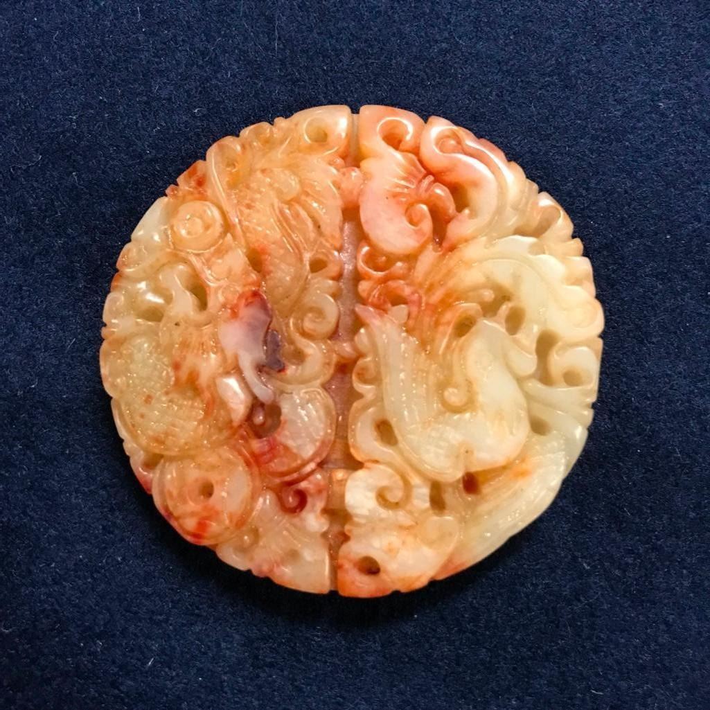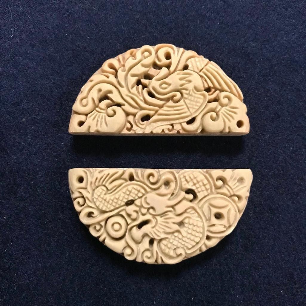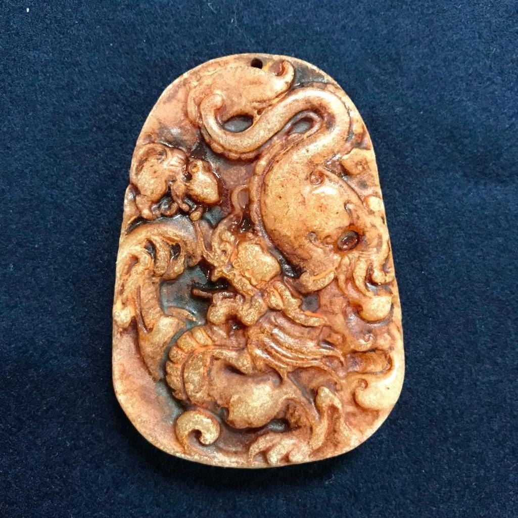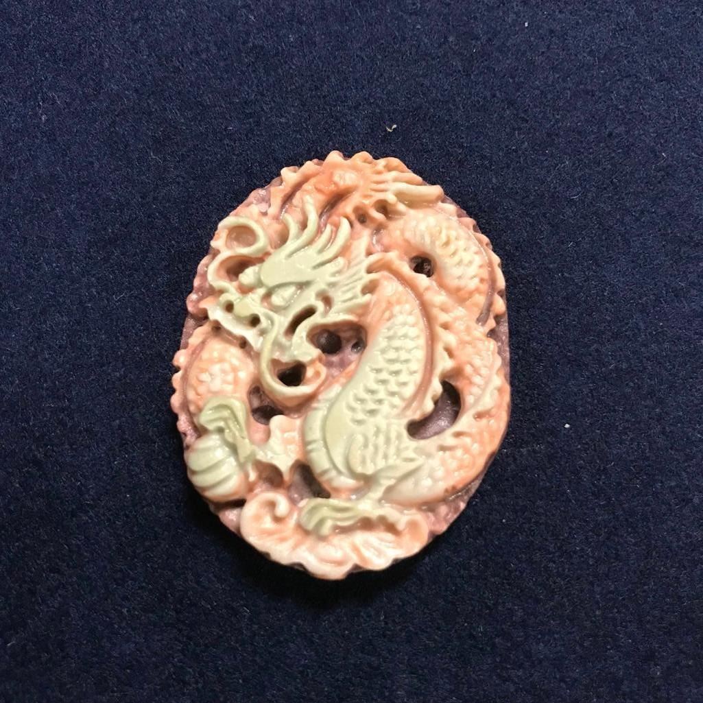 Collection of six Asian dragon & phoenix pendants, totems, amulets - carvings or molds, made with stone & composite materials. 1 3/4" - 2 3/4".