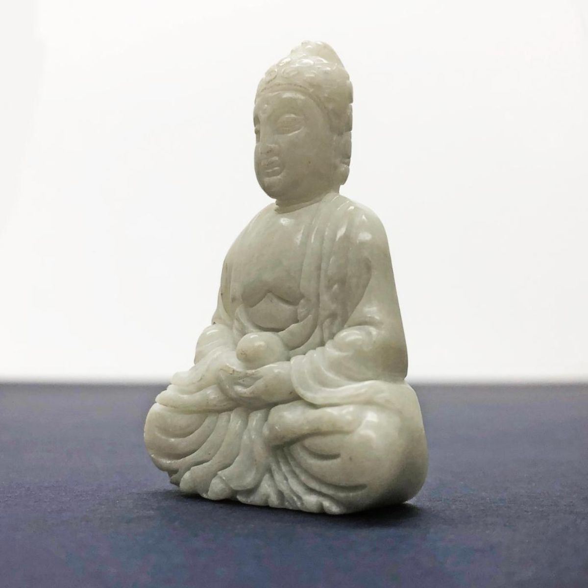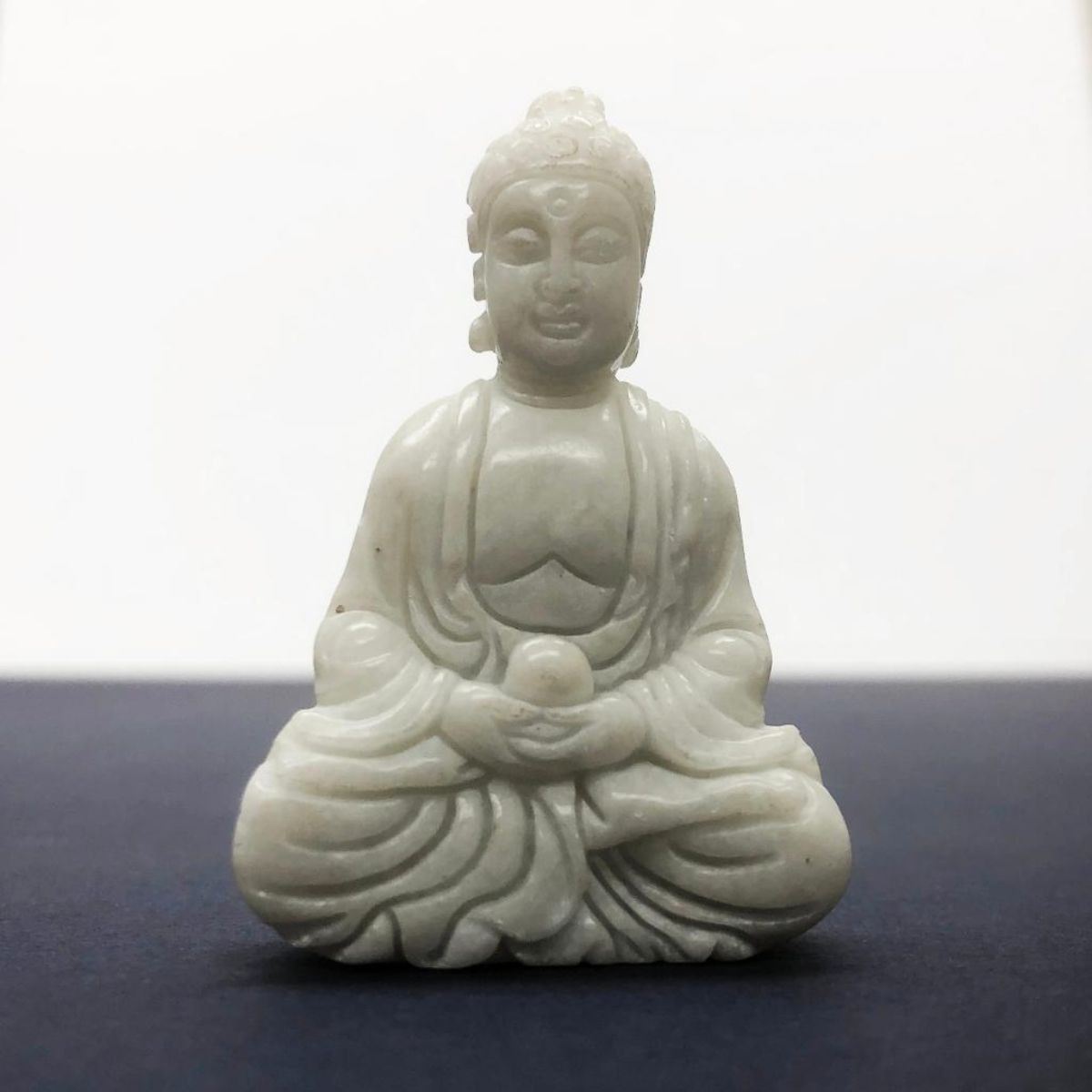 A White Jade Carved Asian Figure Of A Resting Buddha. The Resting Buddha Displays A Presence Of A Calming Aura & Brings Good Luck In Myth To The Bearer. It is also said that white jade aids in decision making processes, as it blocks distractions, allowing you to problem solve with a clear mind.