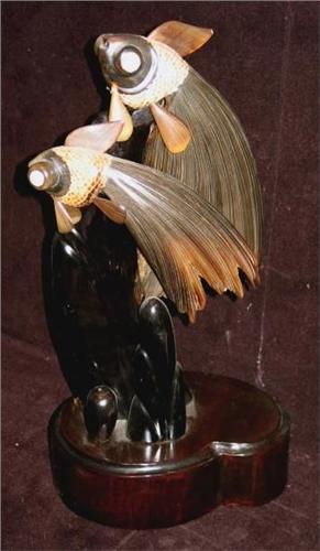 Asian Horn & Mother of Pearly Good Luck Fish Sculpture, 14.5 x 7.
