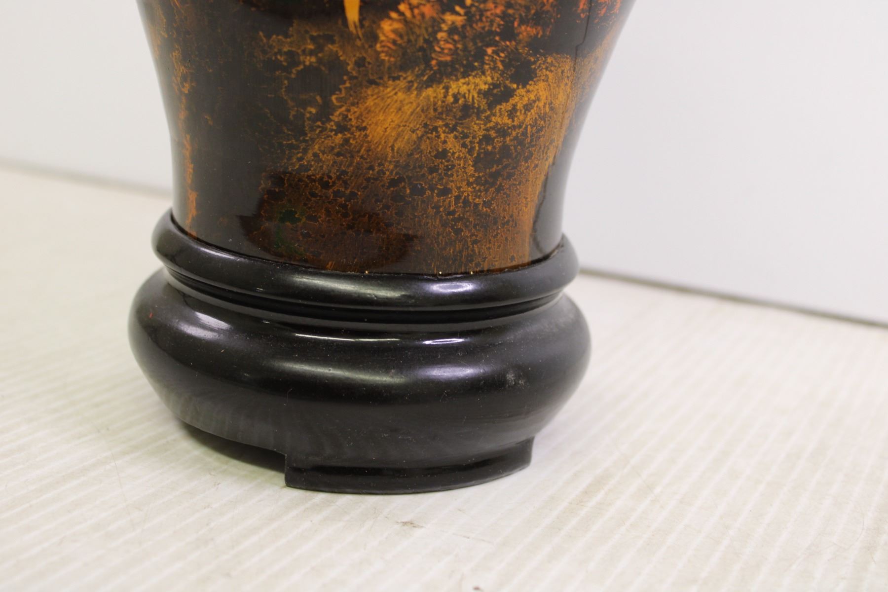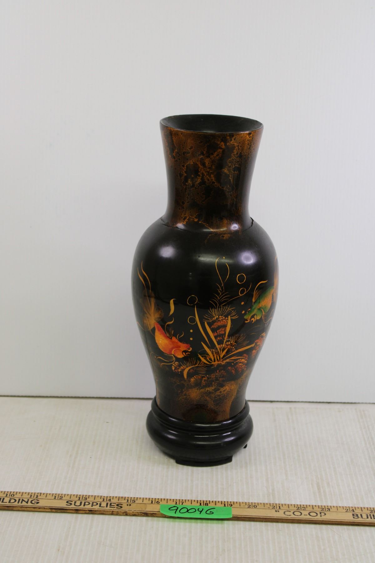 Asian Inspired Wooden Vase with Painted Koi - Crack From Drying