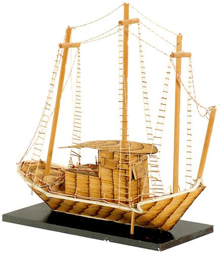 Asian Model Boat With matches handmade Asian junk, length 26 in., on wooden socket. - Decorative ship model!<Br>