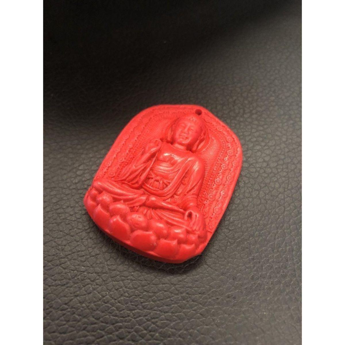 Asian Natural Red Cinnabar Resting Buddha Medallion. View Photos For Further Inspection.