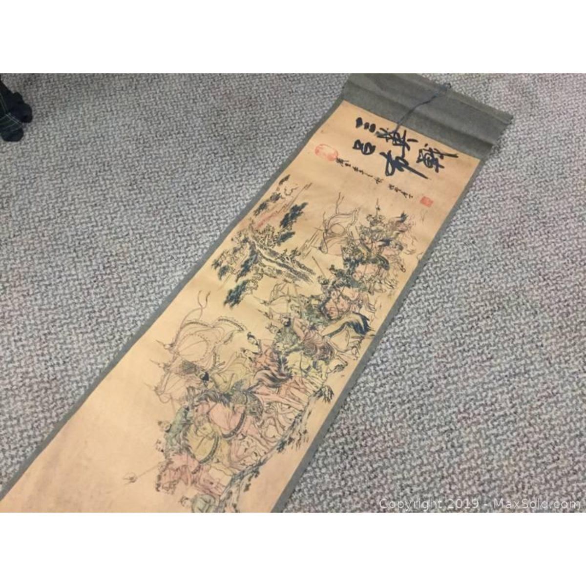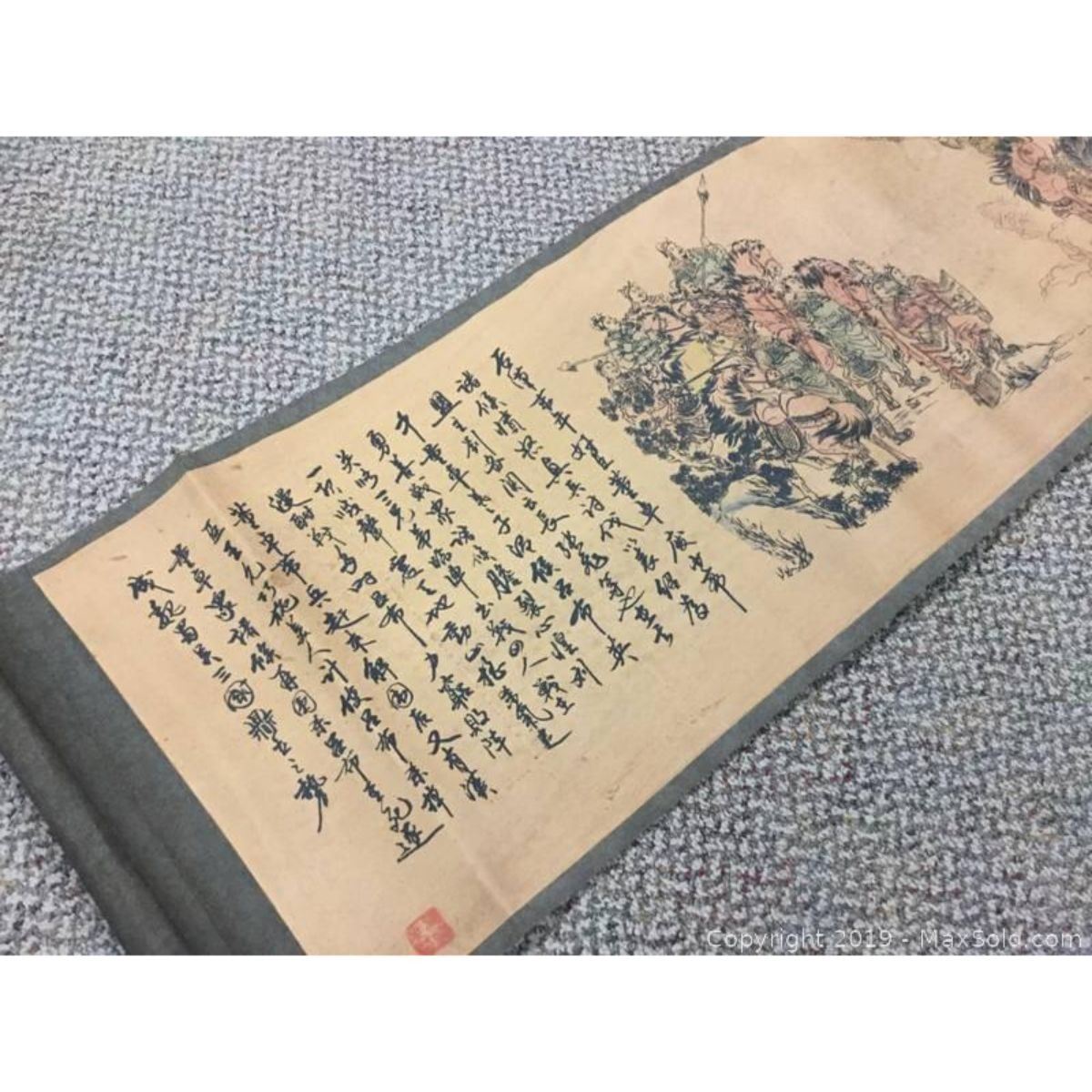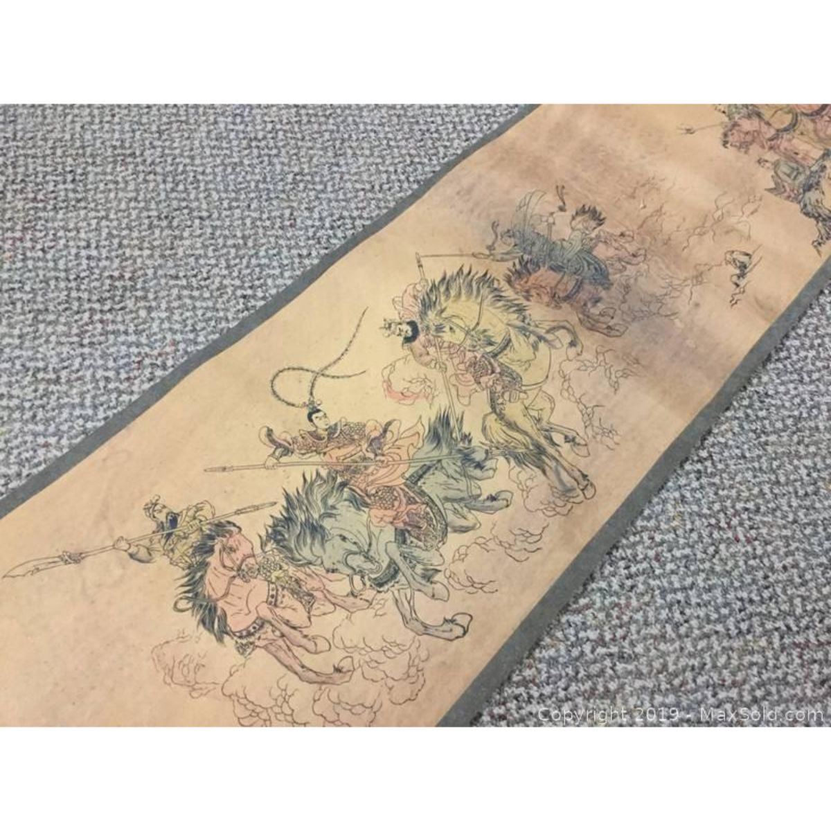 Asian Painted 4 Warriors Legend Scroll With Red Seal Marks.View Photos For Further Details.