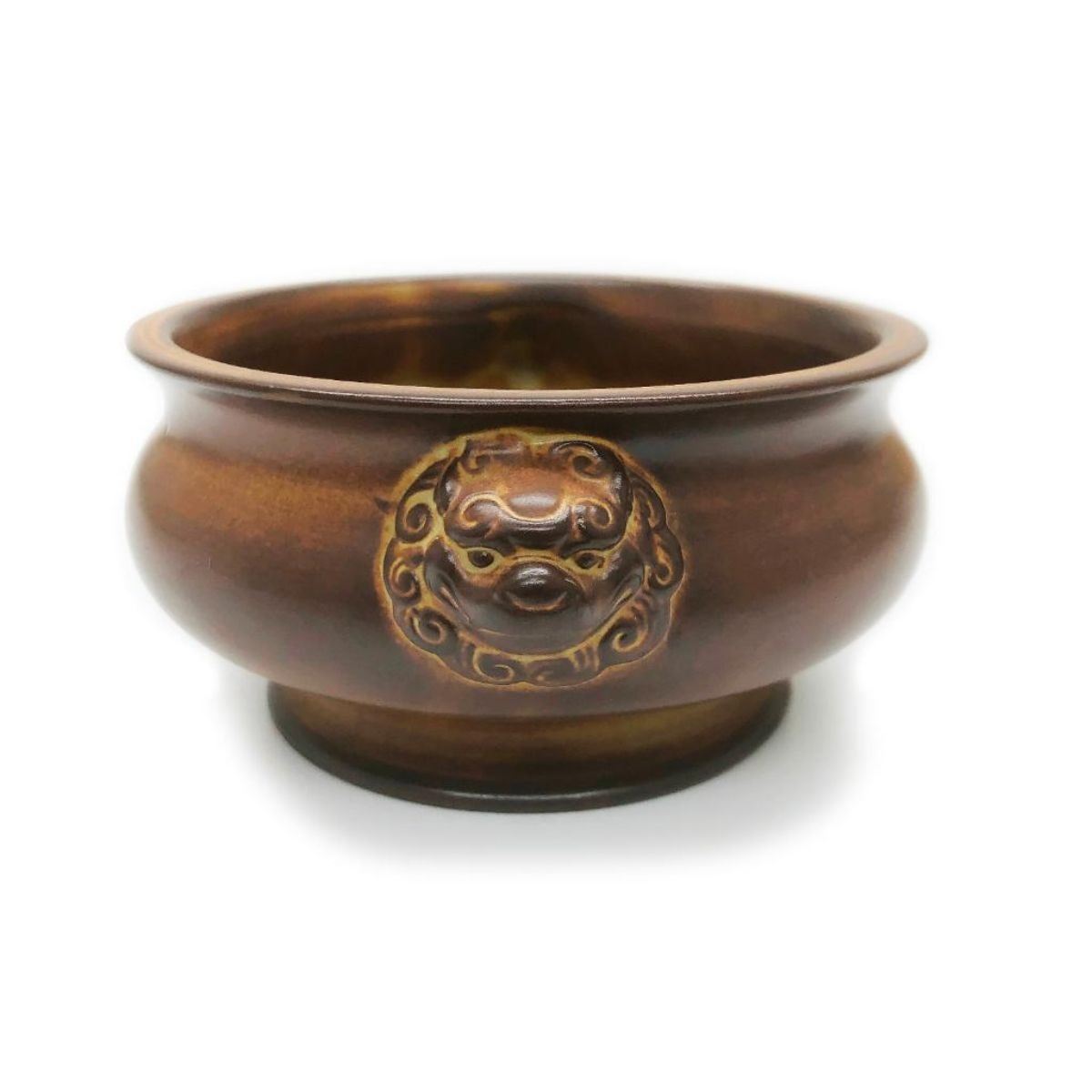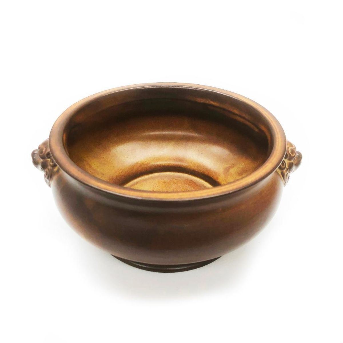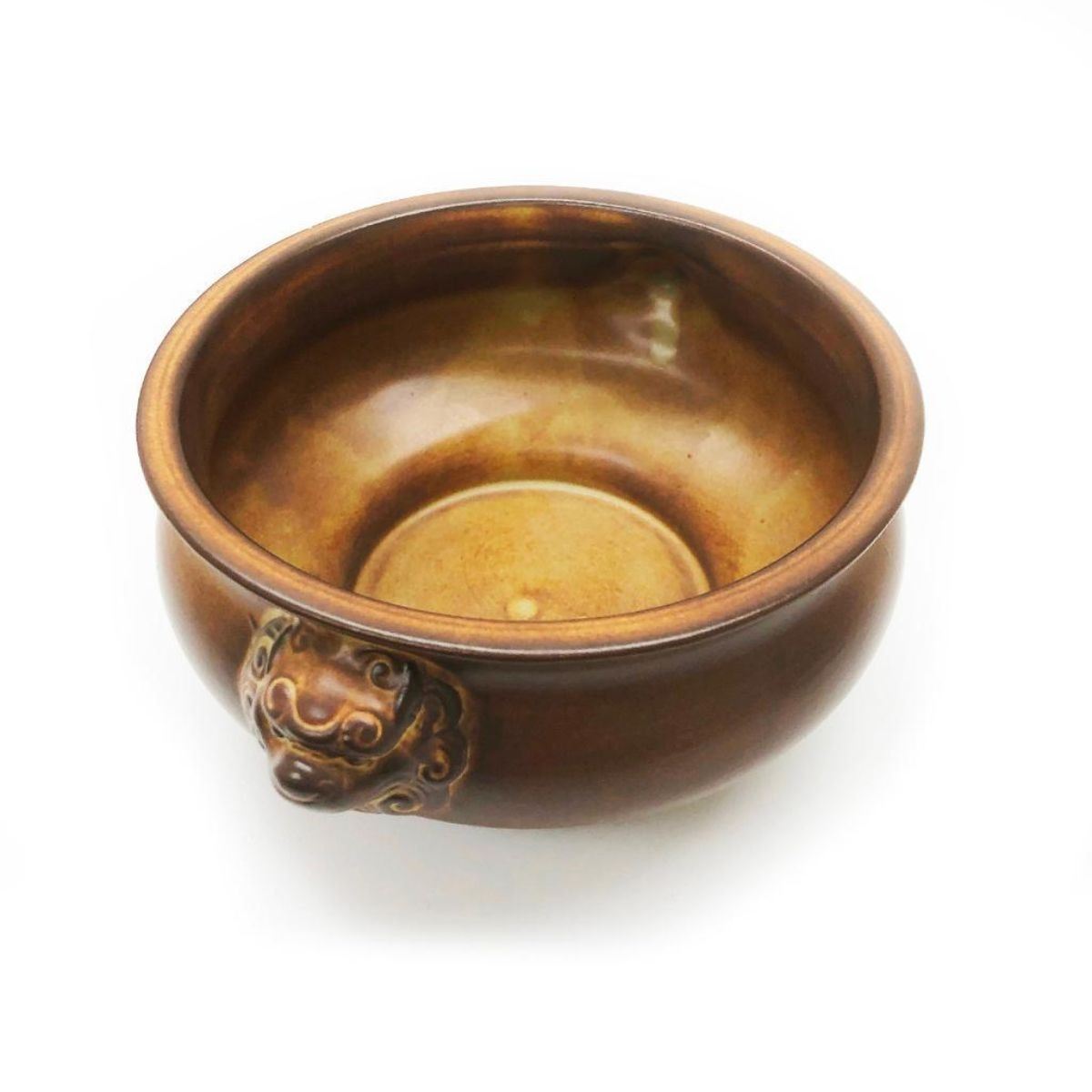 An Asian Porcelain Foo Dog Handled Rice Bowl. View Photos For Further Details.