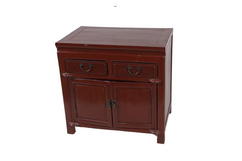 Asian Red Lacquer Night Stand With 2 small drawers and 2 lower doors, shows age and some wood separation, measures 31"Lx20"Dx30"H.With 2 small drawers and 2 lower doors, shows age and some wood separation, measures 31"Lx20"Dx30"H.