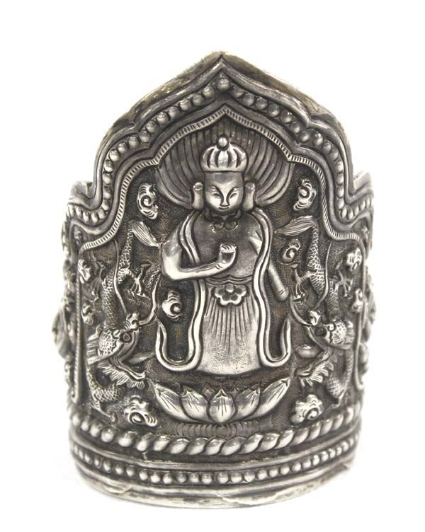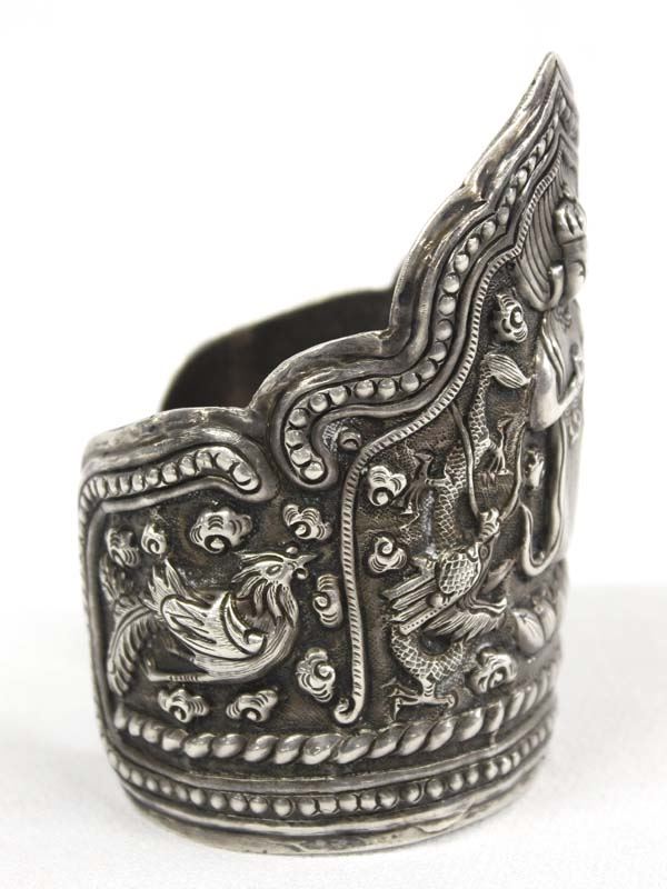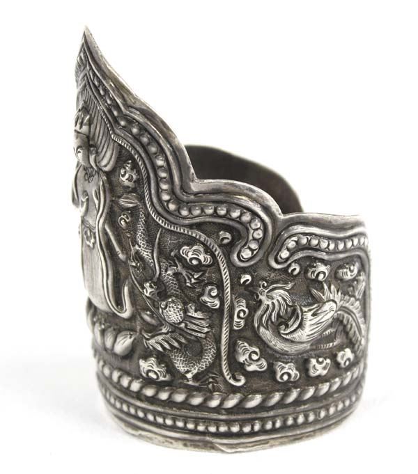 Asian Silver Cuff Bracelet, inside measures 7.5" x 3.5"W, inside is stamped China Silver, 80.49g in total wt.