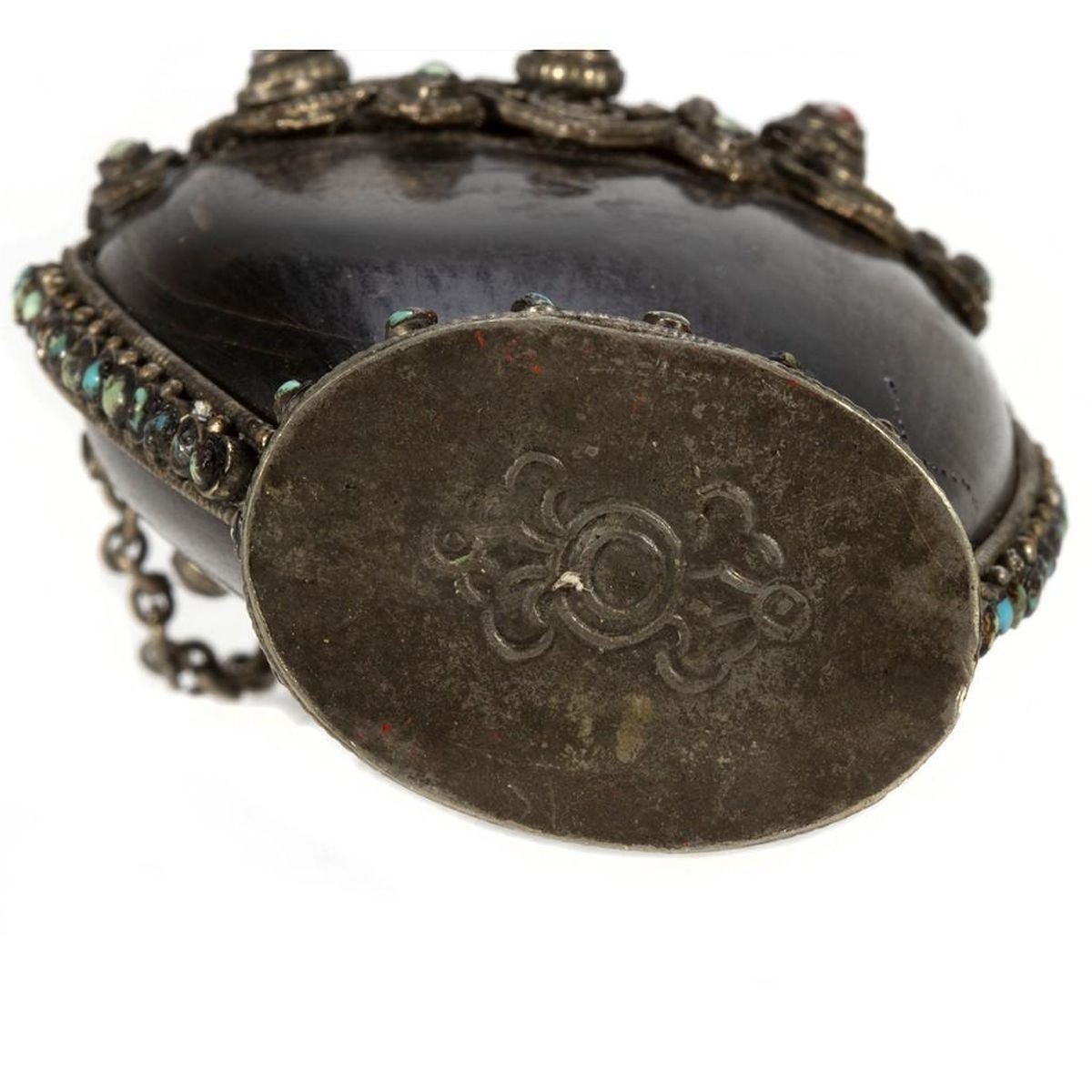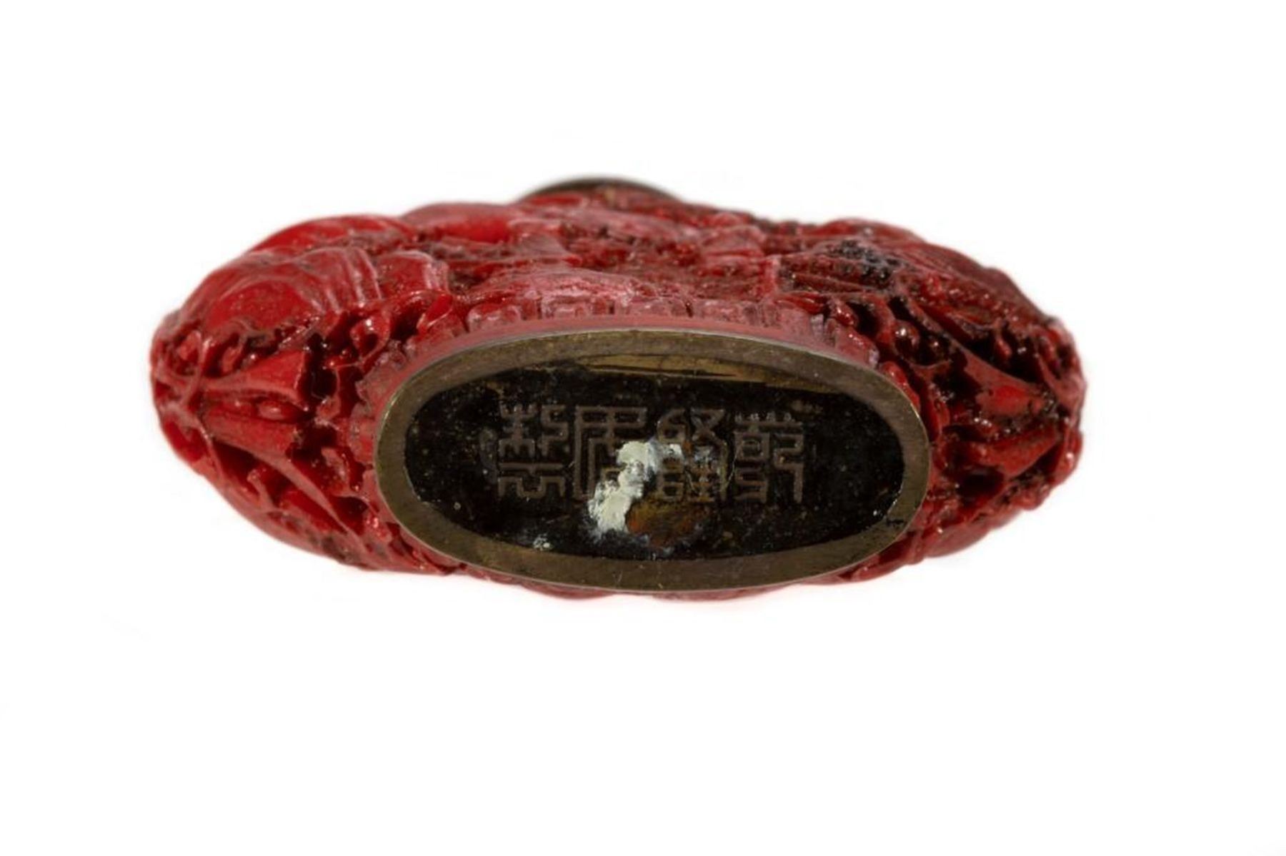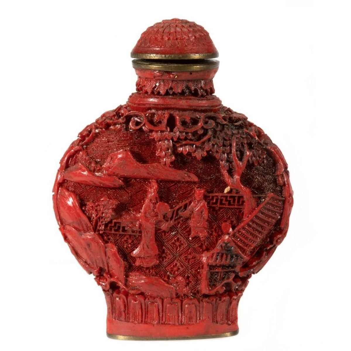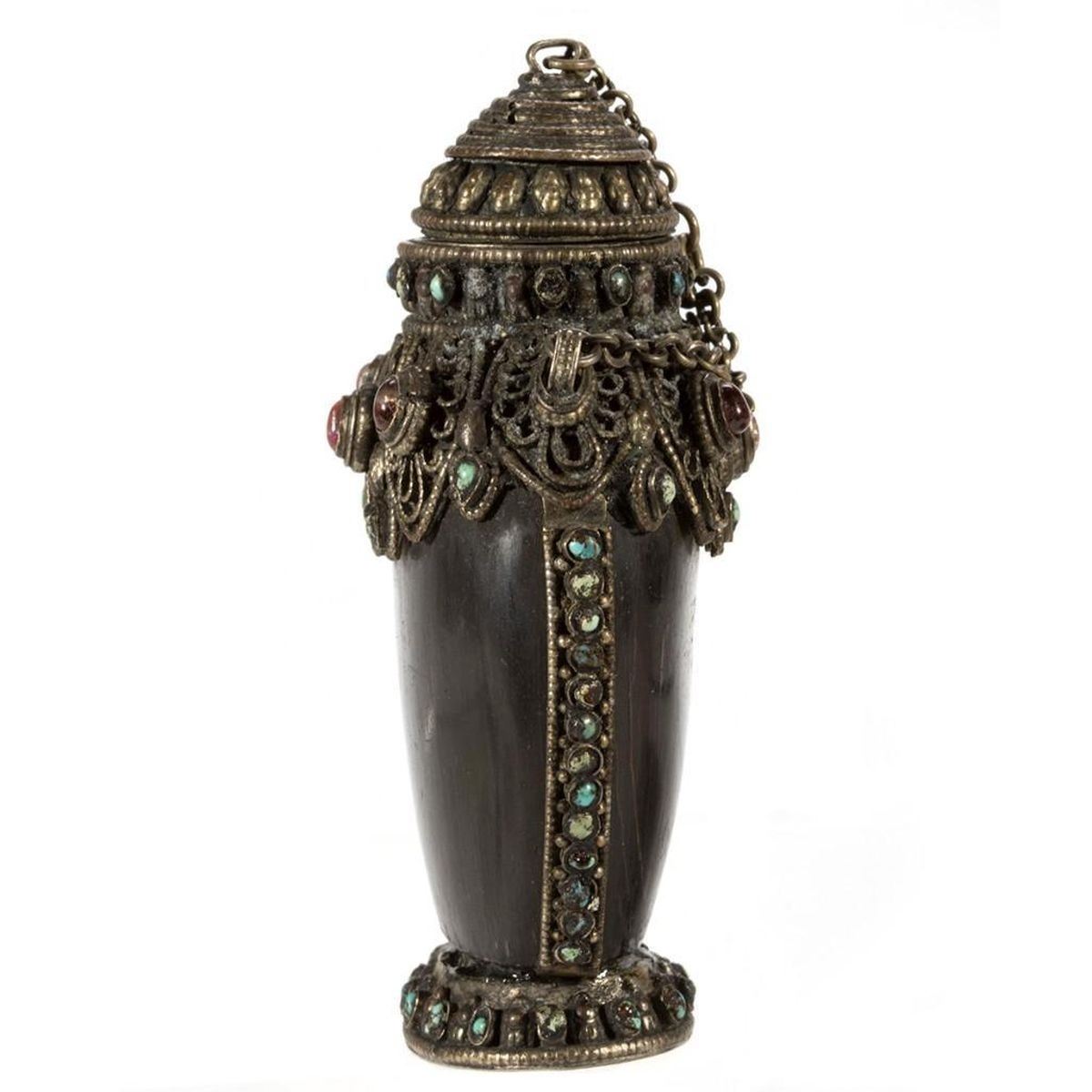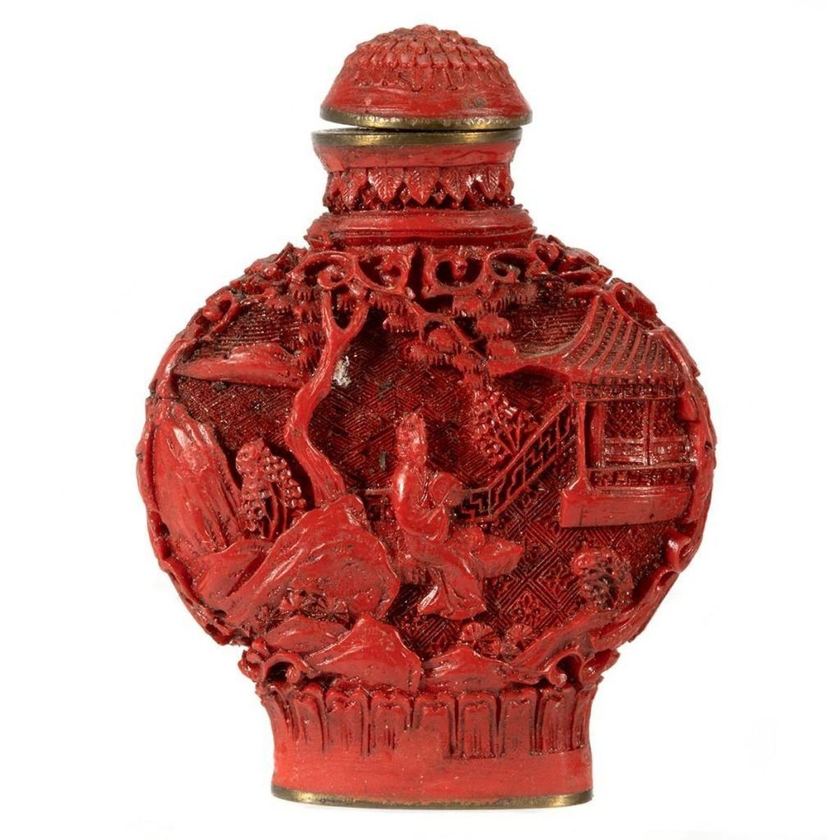 The first of carved cinnabar, the second (perhaps Tibetan) set with 'jewels.' Greatest height: 3 1/4in. Condition: One lacking stem.