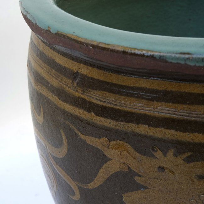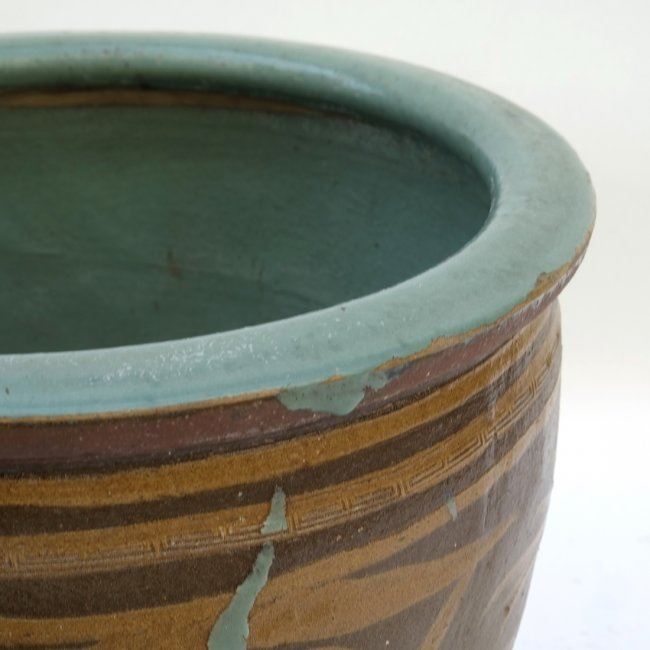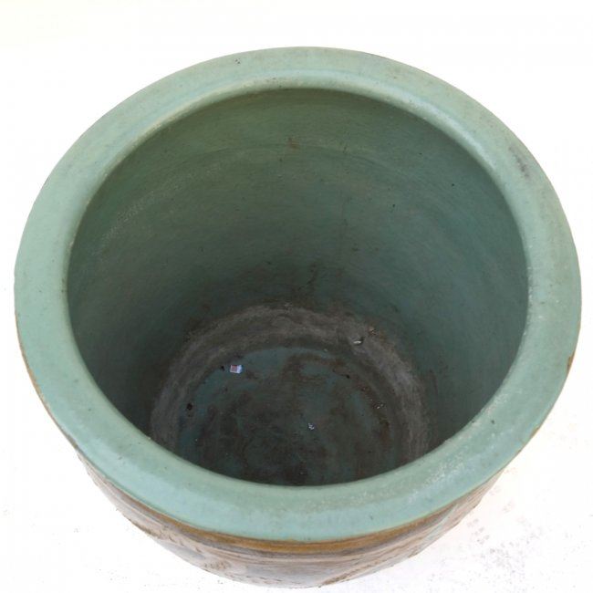 Asian-style ceramic planter. [20" Dia x 20" H]. Chips and wear.