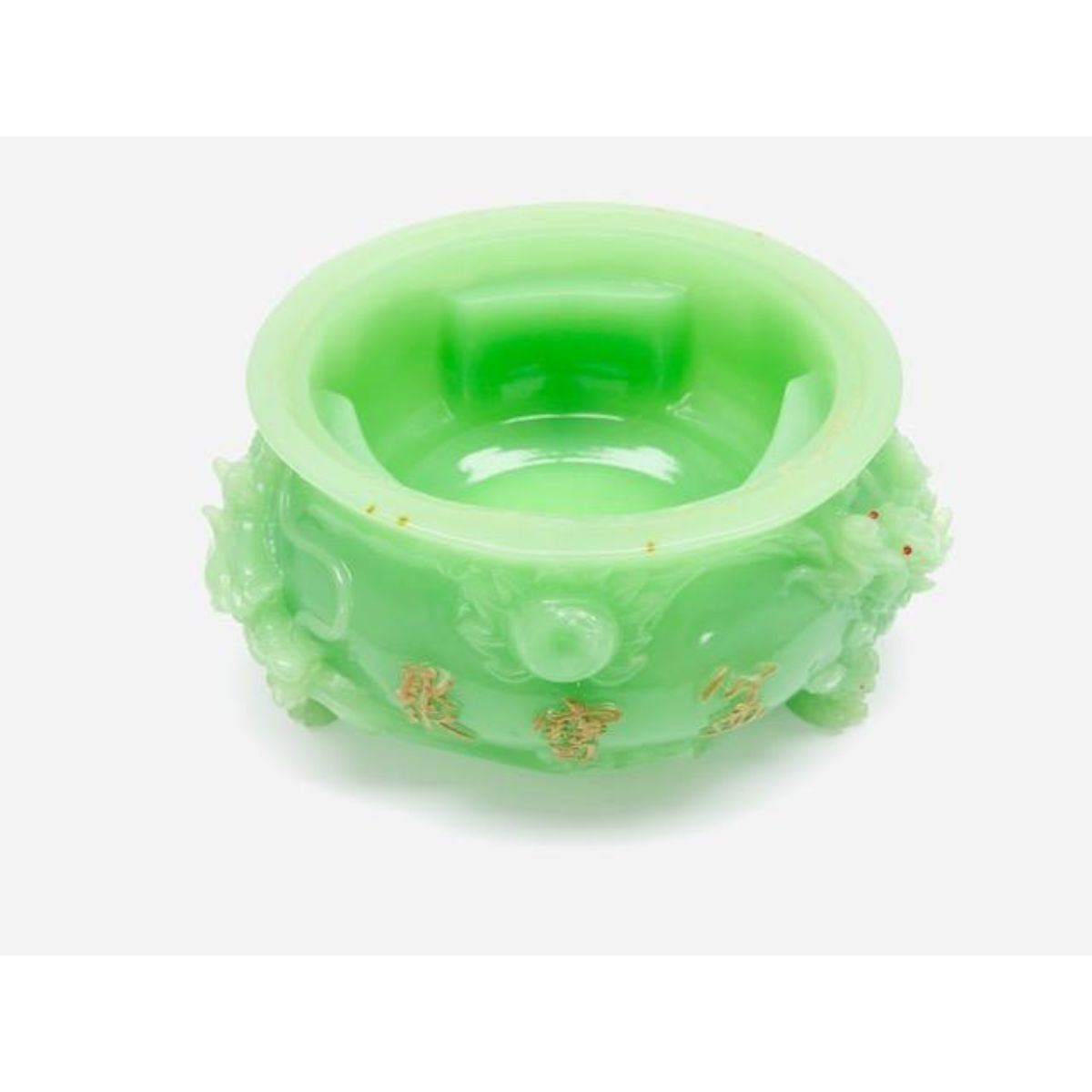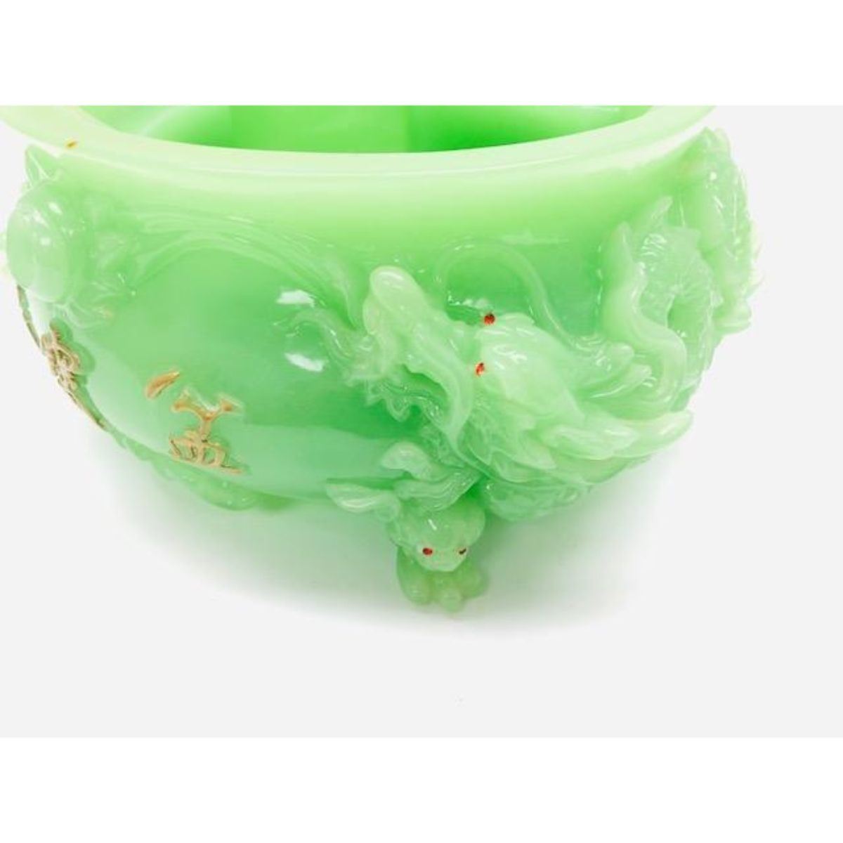 Asian Style Dragon Carved Footed Bowl With Red Semi-Precious Stones. Stunning Centre Piece & Conversation Starter. Please Note Two Red Stones Are Missing. In Good Condition, View Photos For More Details.Â