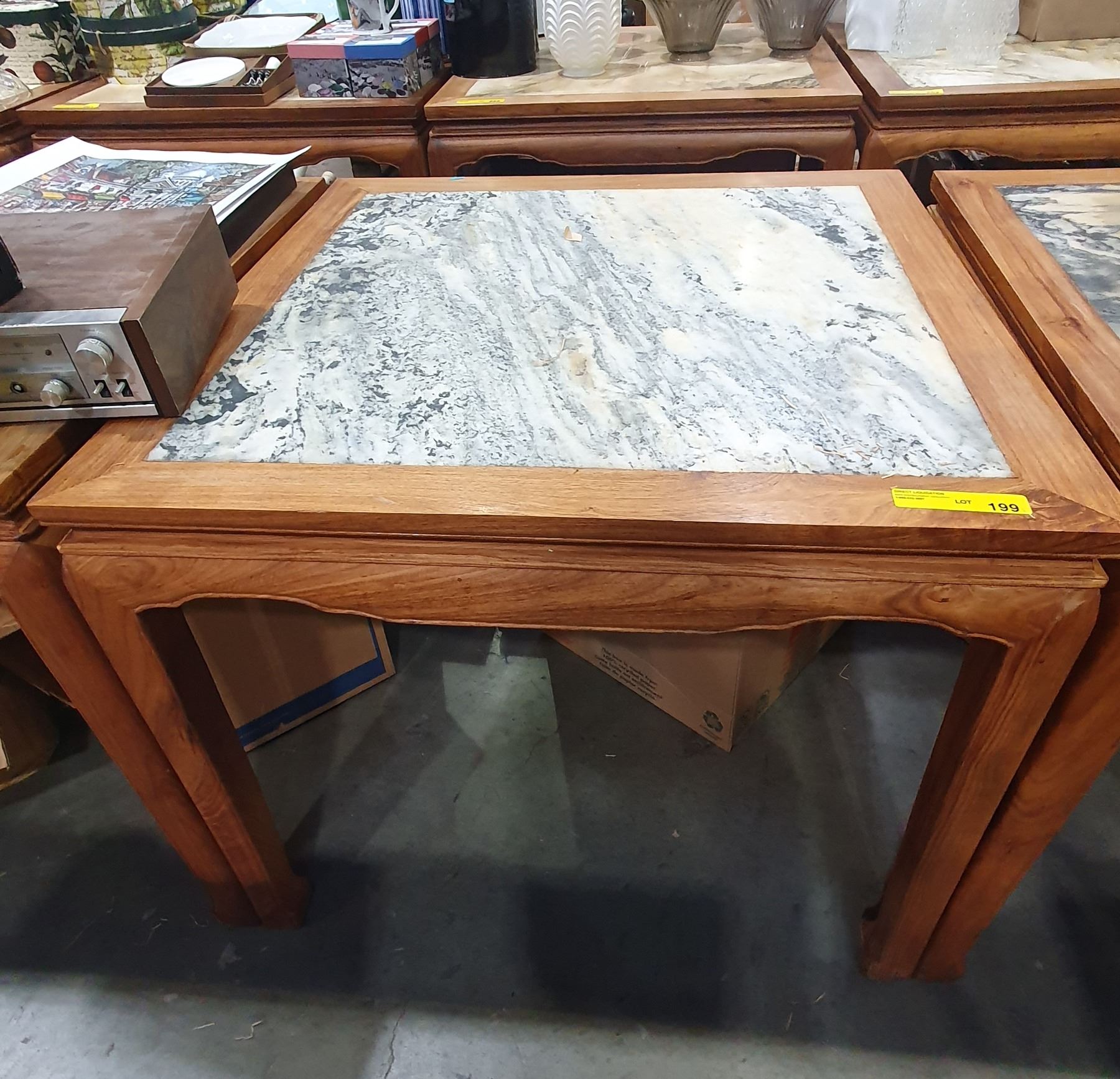 Asian Style Walnut Table w/ Marble inlayed top (3ft square x 31")