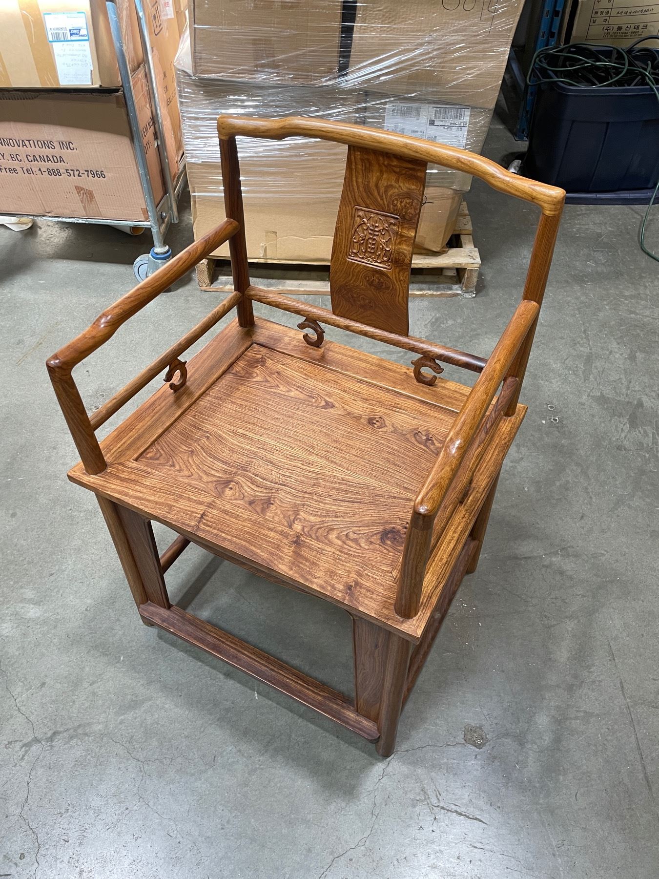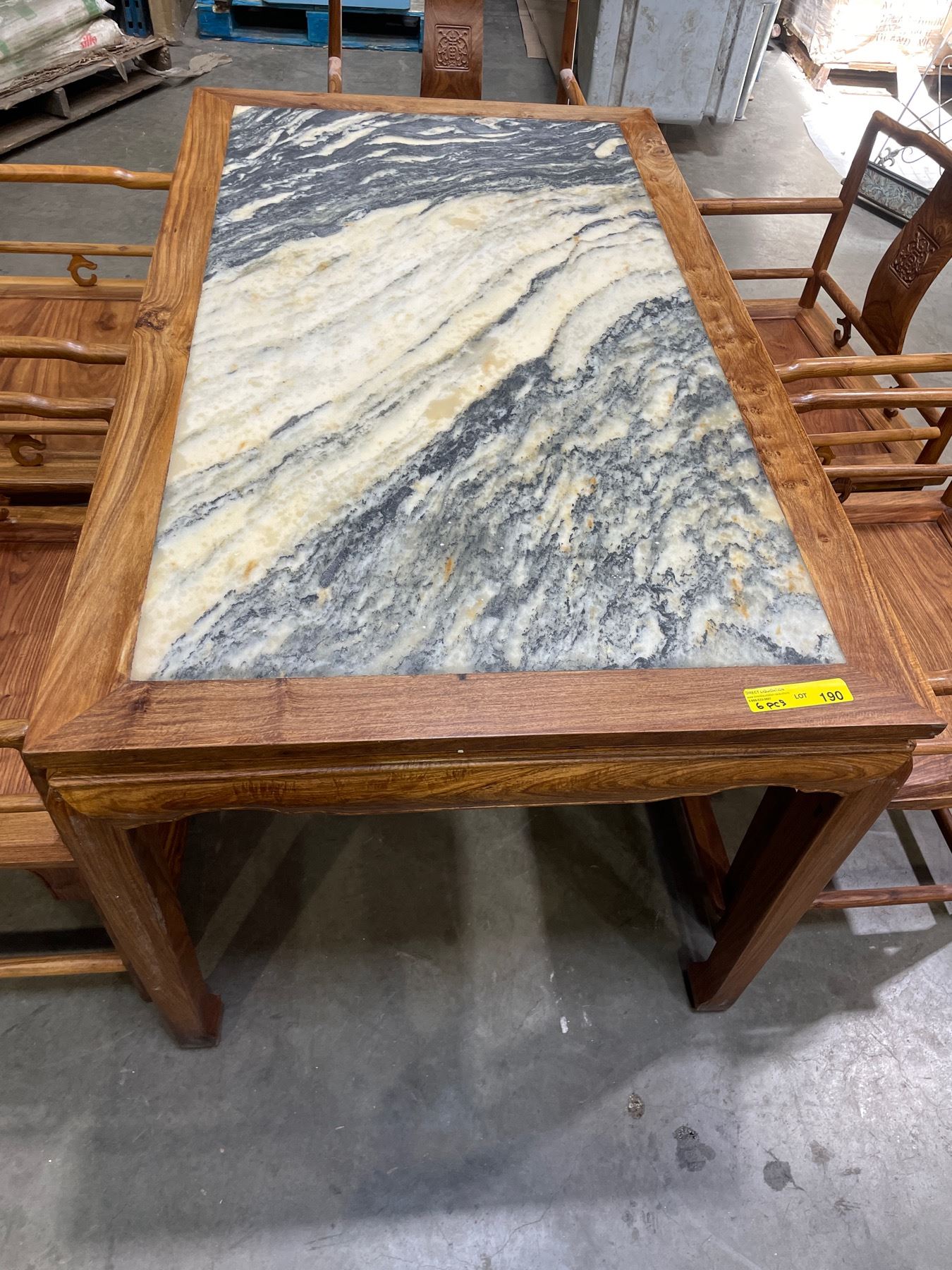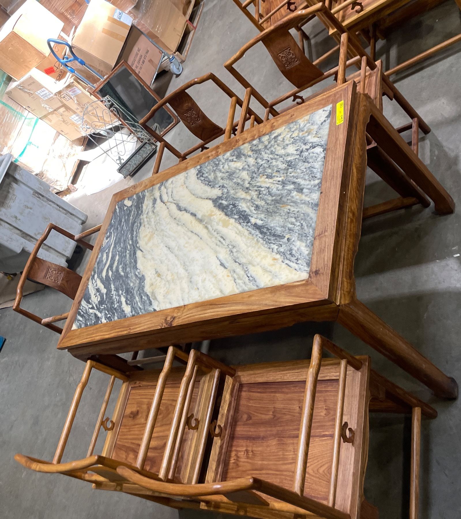 Asian Style Walnut Table w/ Marble inlayed top (54x32x31") & 5 Walnut Chairs