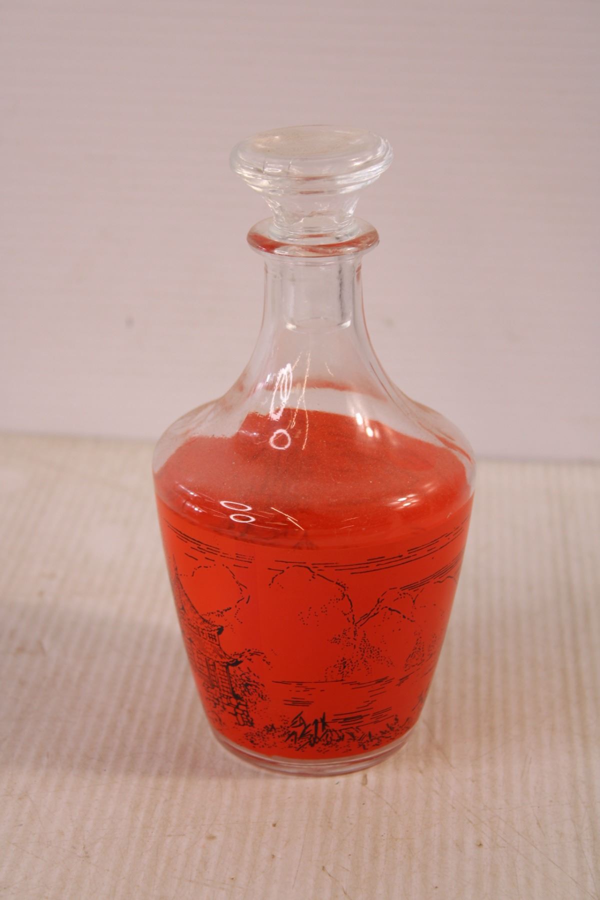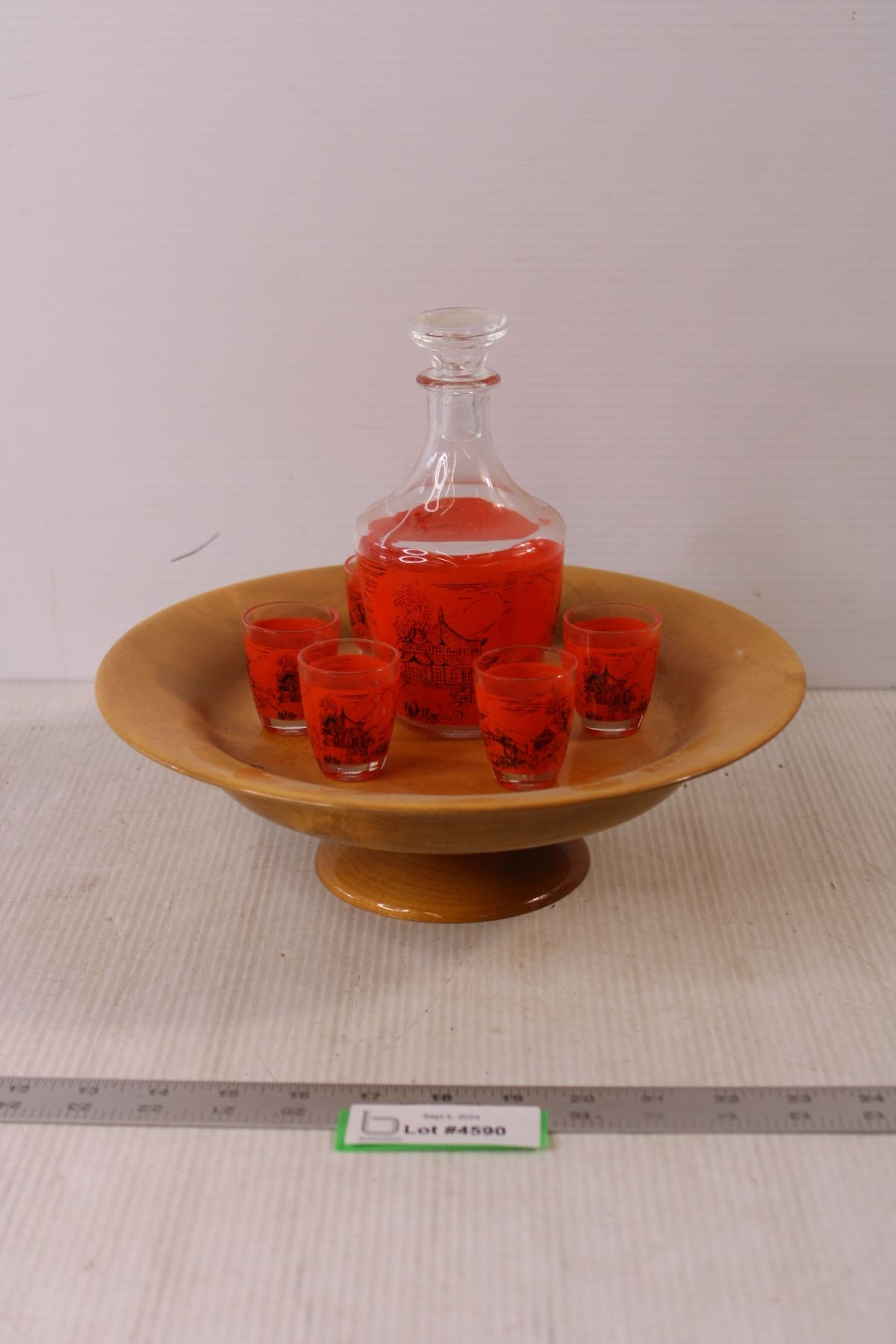 Asian Themed Decanter and Glass Set on Myrtlewood Stand