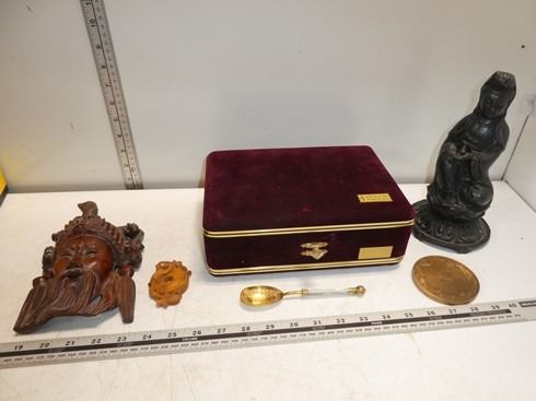 Hand Made Asian Man Wall Plack, Cast Iron Statue, etc.