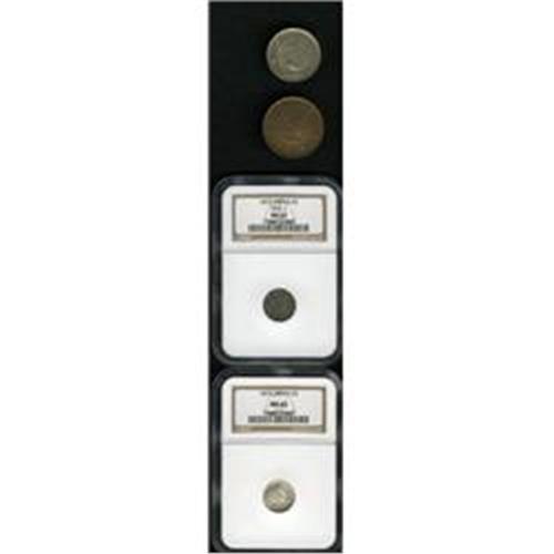 <B>Asian Type Quartet, </B></I>Burma 5 Mu 1852, cleaned VF-XF, porous area on the peacock's breast, Japan 5 Sen 1873 Type 1, MS62 NGC and 1875 MS65 NGC, and Korea Chon 1906, choice lustrous UNC. <B>Sold as is, no return lot.</B></I>