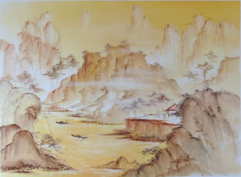 Oriental | Title of Art: Oriental | Medium: Hand Signed by the Artist Original Watercolor Painting on Canvas | Edition #: Original | Unframed Size: 28 x 20 inches | Offered Unframed. Framing presentation if shown is for concept only. If you need assistance with custom framing, call the experts at ArtForSale