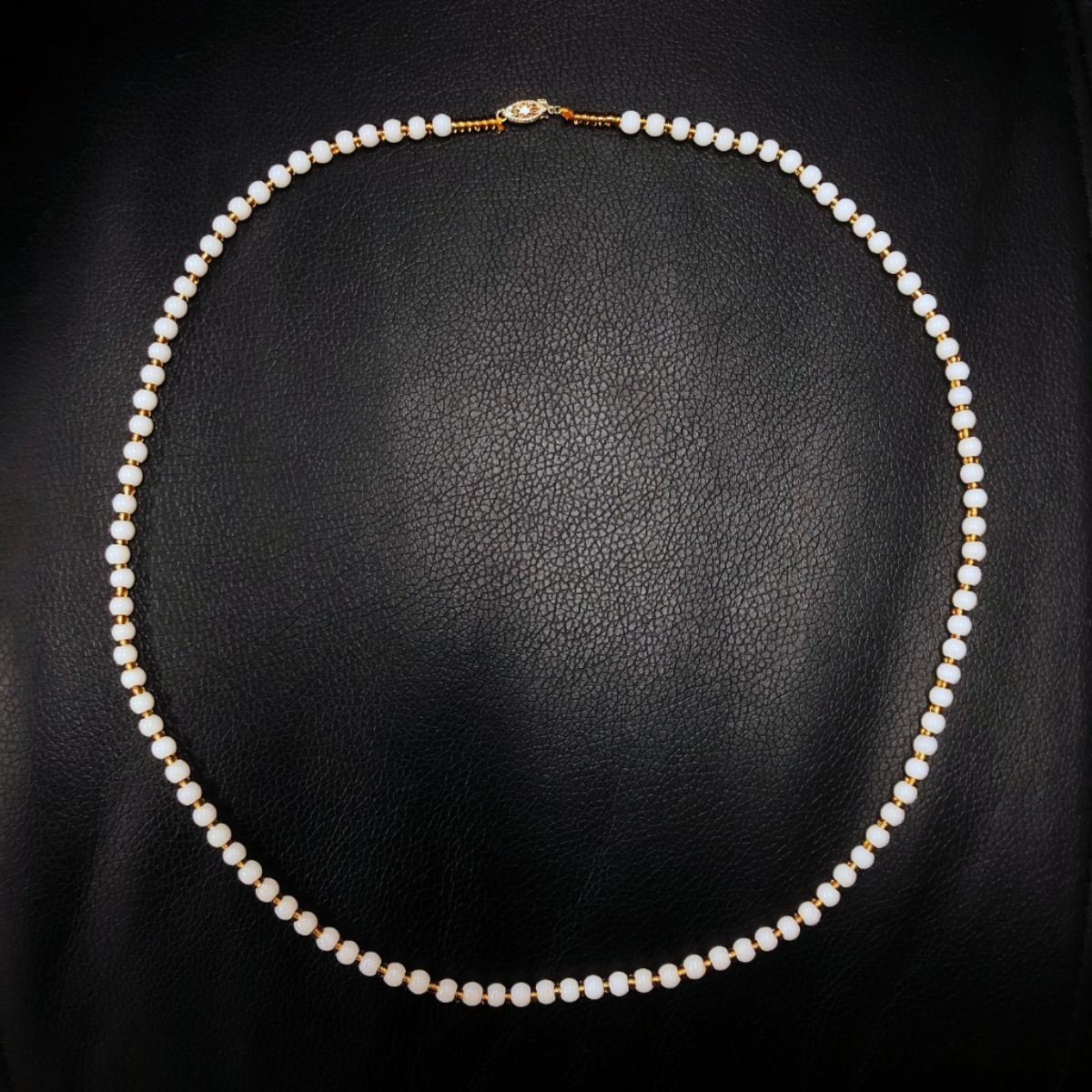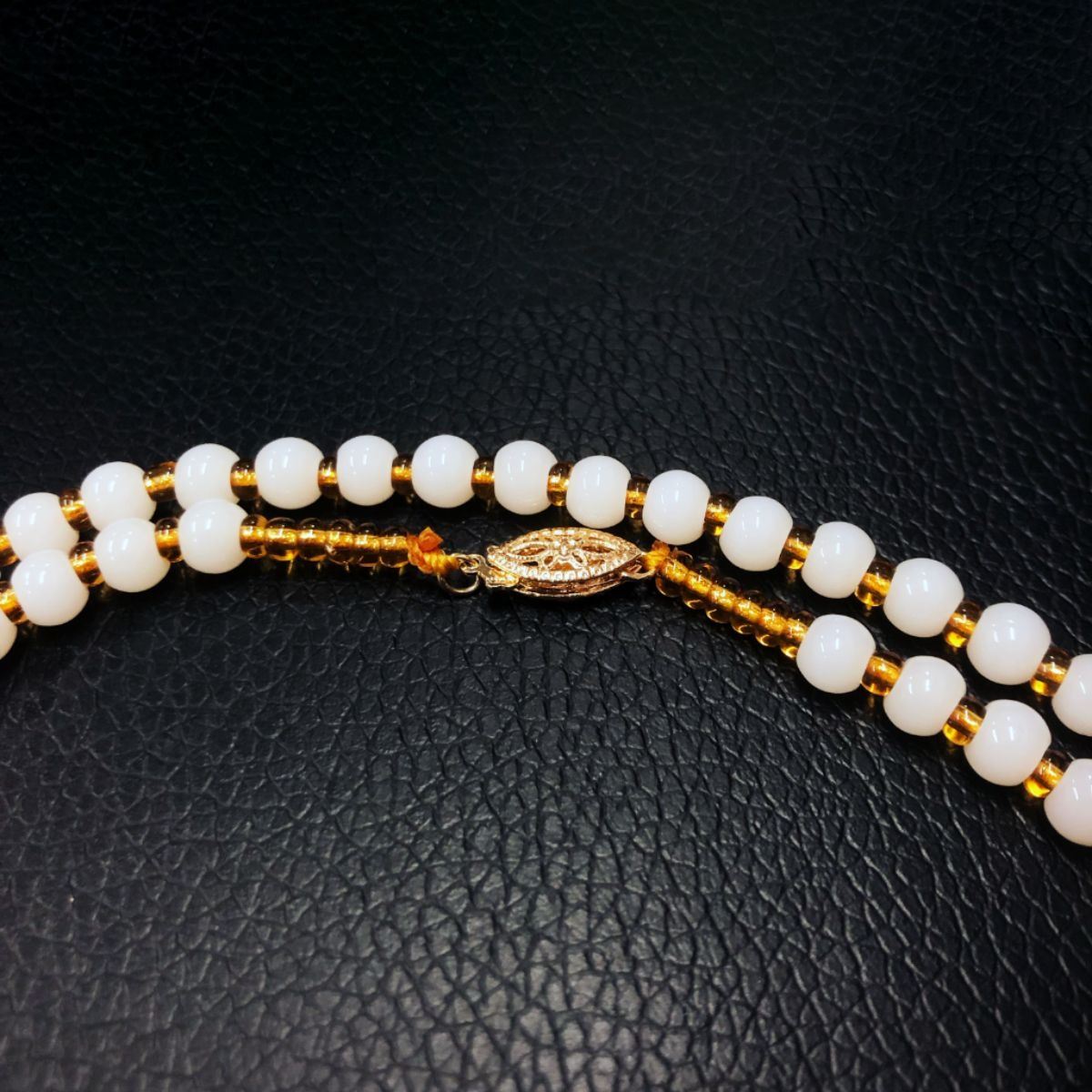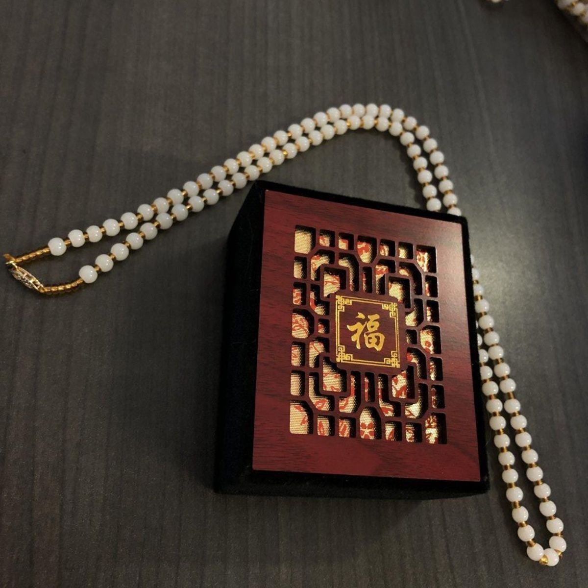 Asian White Jade Necklace 14k Gold Plated Clasp With Chinese Window Shade Box