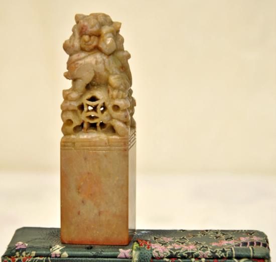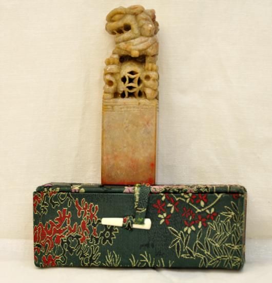 Normal 0 Asian soapstone seal in original box mid. 20thcentury.4"tall.