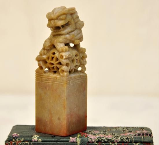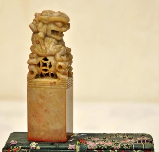 Normal 0 Asian soapstone seal in original box mid. 20thcentury.4"tall.