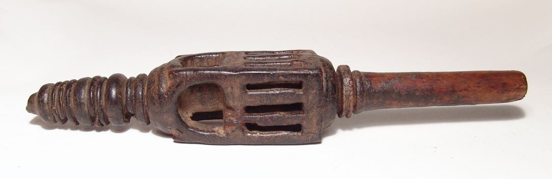Asian wood Scepter/finial/ or torch sculpture, H: 101/4 in (26.1cm). Ex Rhode Island private collection.