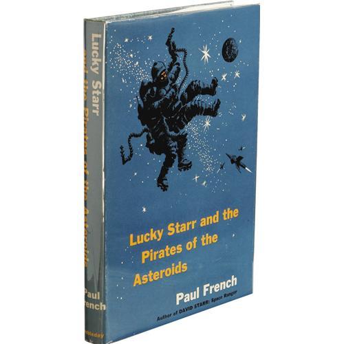 <B>Paul French <I>saac Asimov :<I> Lucky Starr and the Pirates of the Asteroids.</B></I></B></I> (New York: Doubleday & Company, Inc., 1953), first edition, 188 pages, jacket design by Richard Powers, light blue boards with gilt titles, 8vo (5.75" x 8.25"), fine in a fine unclipped jacket. <I>From the Ventura Collection.</B></I><BR><BR><b>Shipping:</b> Books & Catalogs (<a target="_blank" href="http://www.heritageauctions.com/common/shipping.php">view shipping information</a>)