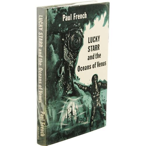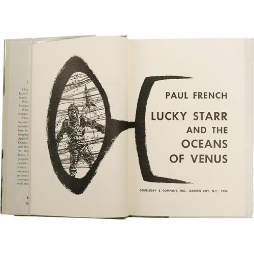 <B>Paul French <I>saac Asimov :<I> Lucky Starr and the Oceans of Venus.</B></I></B></I> (New York: Doubleday & Company, Inc., 1954), first edition, 186 pages, jacket design by Richard Powers, olive boards with black titles, 8vo (5.75" x 8.5"), appears unread, fine in a fine unclipped jacket. <I>From the Ventura Collection.</B></I><BR><BR><b>Shipping:</b> Books & Catalogs (<a target="_blank" href="http://www.heritageauctions.com/common/shipping.php">view shipping information</a>)