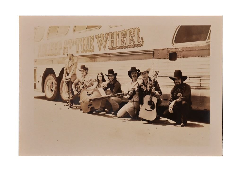 3.5" x 5.25" original photo of Asleep At The Wheel: Leroy Preston, Chris OConnell, Tony Garnier, Richard Casanova, Floyd Domino, Lucky Owens. From Ray Benson's personal collection.