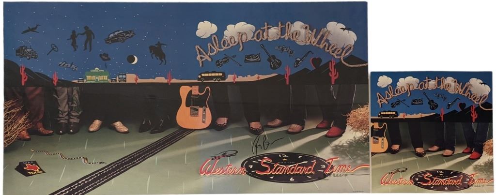 From Ray Benson's Collection. Two Asleep At The Wheel "Western Standard Time" Posters. One is double sided Poster 12.25 X 12.25 and the other is 36.75 X 19.5 inches.