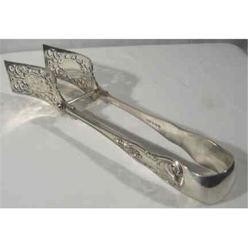 Silver Plated Asparagus server flat tongs. English.9.1/4" X 1.3/4" at its widest point. English Kings Pattern