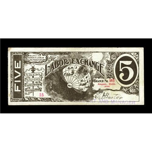 Aspen, CO- Labor Exchange $5 1896A truly great piece, a Aspen, CO- Labor Exchange