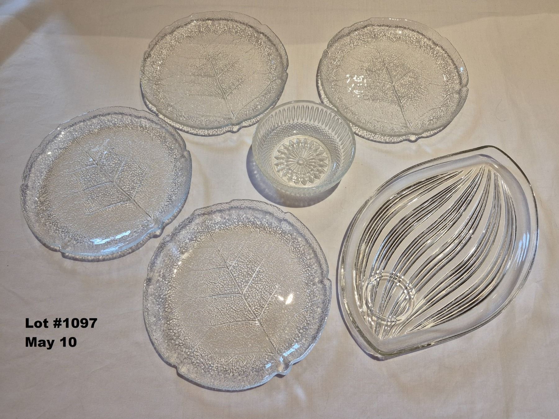 Aspen Leaf Clear Glass Plates (France) / Serving Platter and Glass Bowl (Italy)